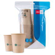 自營(yíng)得力19207 一次性紙杯 250m竹纖維本色杯子/水杯 加厚隔熱 50只/袋
