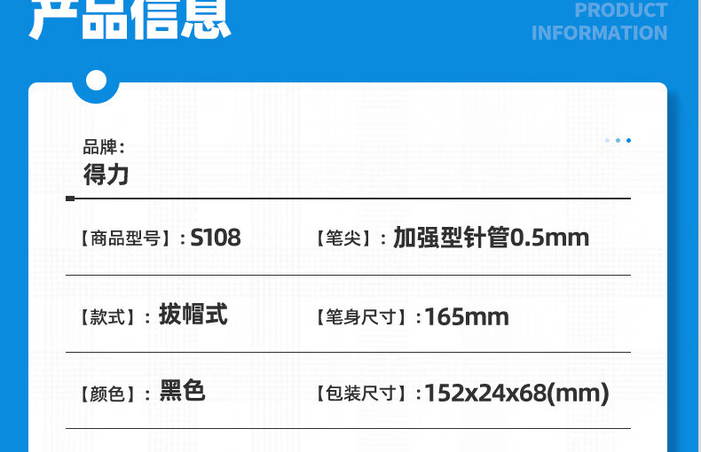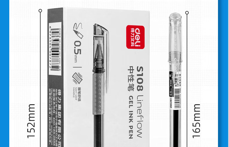 商品名稱:得力S108 中性筆 臻順滑無印風ins冷淡風辦公筆 0.5mm全針管 黑色 12支/盒 【順滑之星】