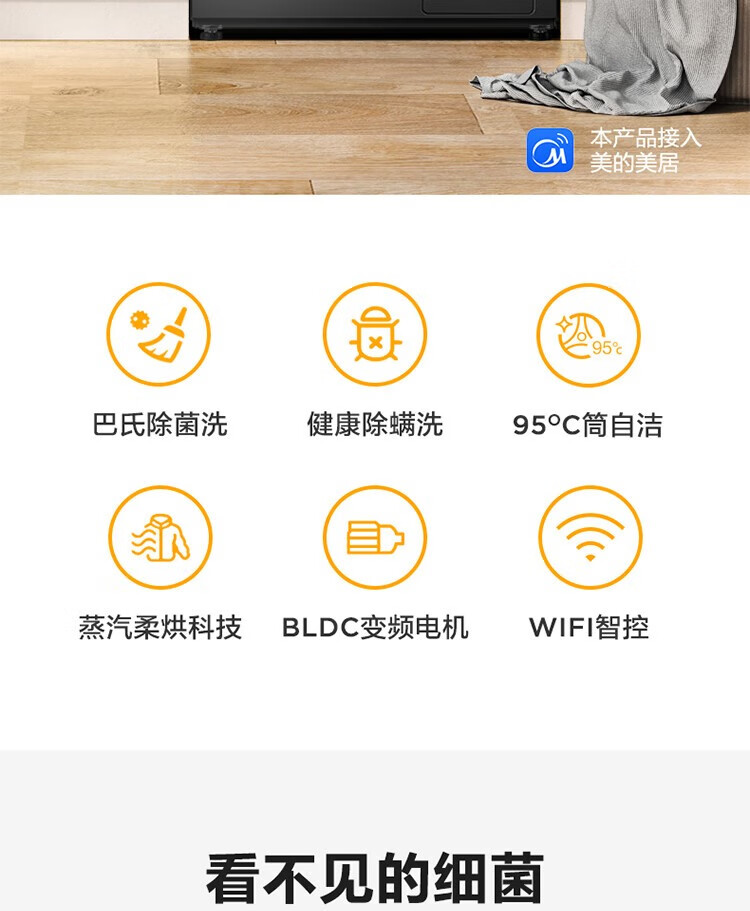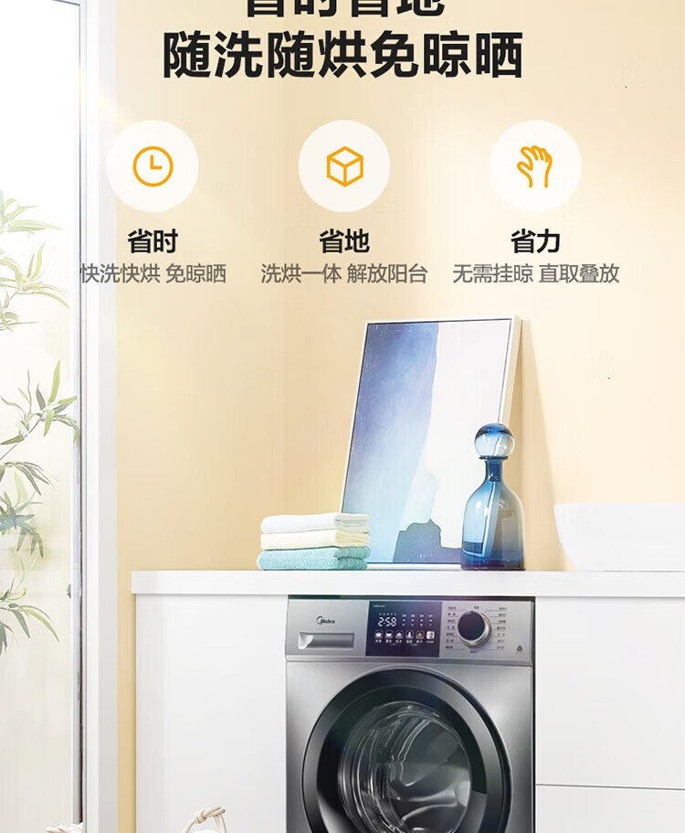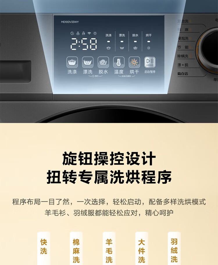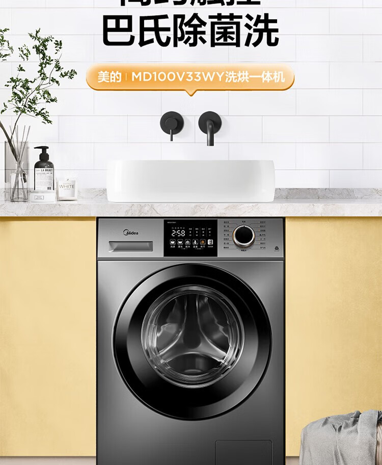 商品名稱(chēng):美的MD100V33WY 滾筒洗衣機(jī)全自動(dòng) V33 洗衣機(jī)帶烘干洗烘一體機(jī) 除菌凈螨 簡(jiǎn)尚系列 超薄款 10公斤