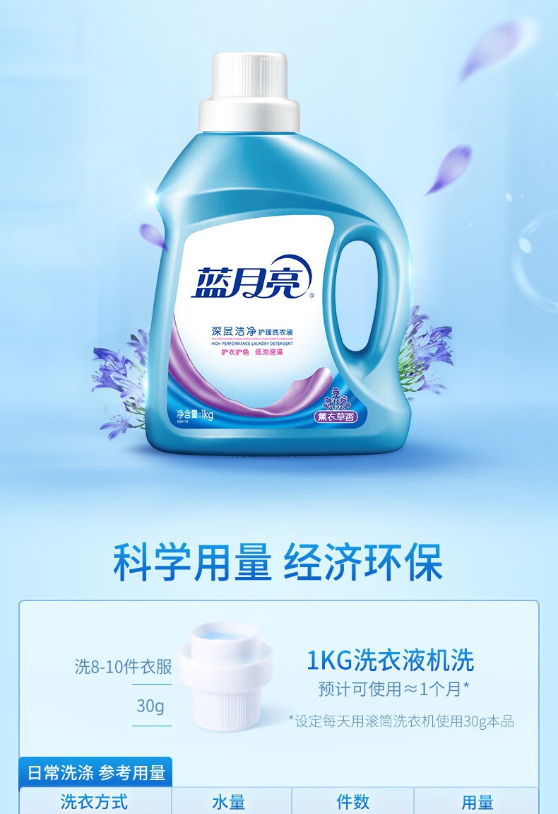 商品名稱:藍(lán)月亮 深層潔凈護(hù)理洗衣液(薰衣草香)1kg/瓶