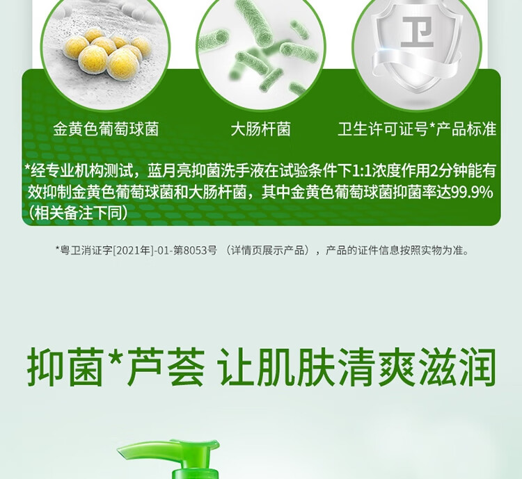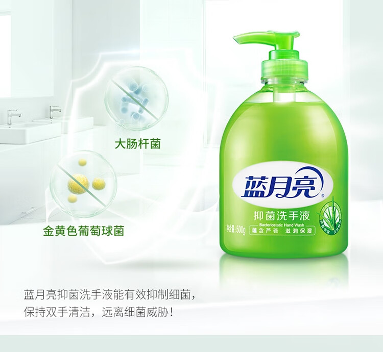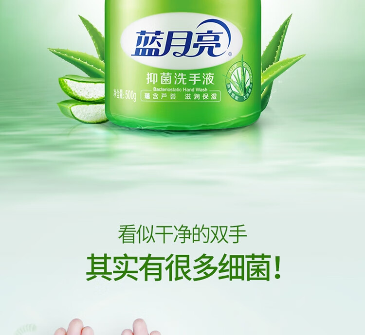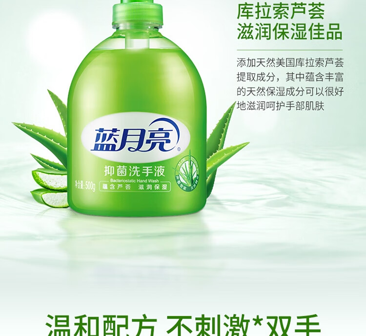 商品名稱:藍(lán)月亮 蘆薈抑菌洗手液 清潔抑菌99.9% 泡沫豐富 易沖洗 500g/瓶