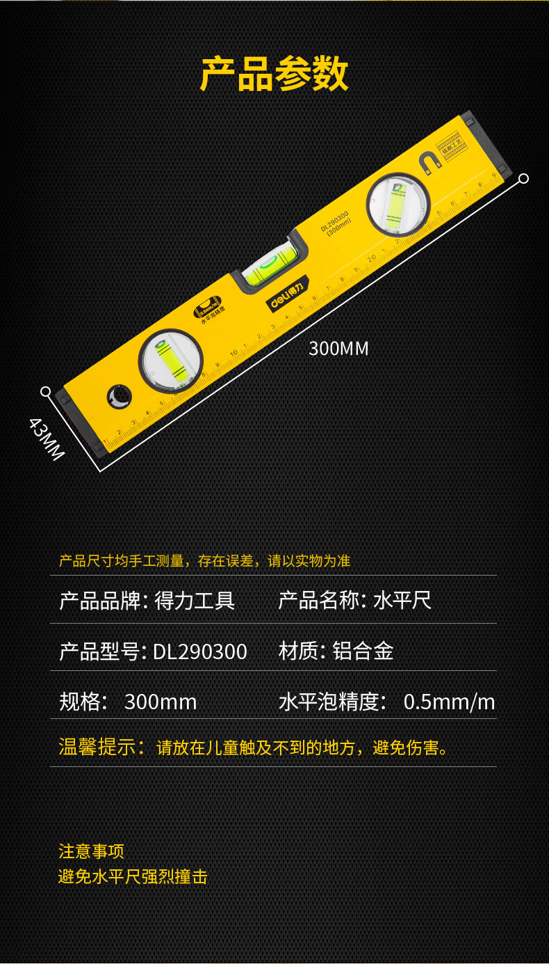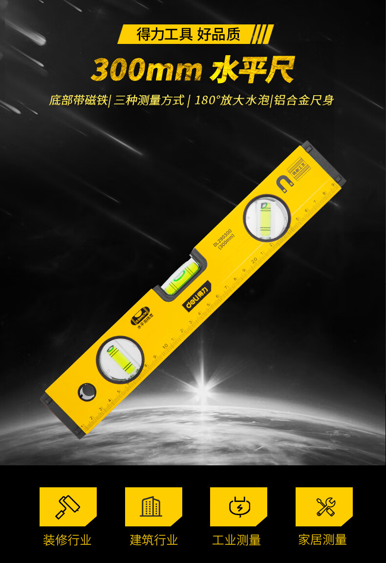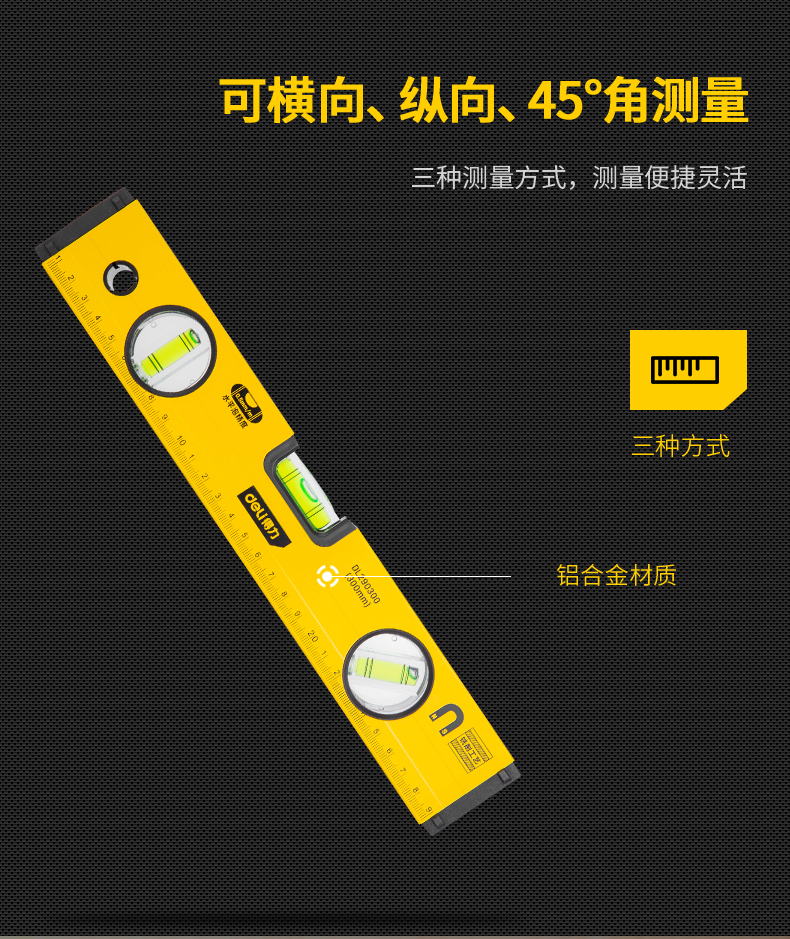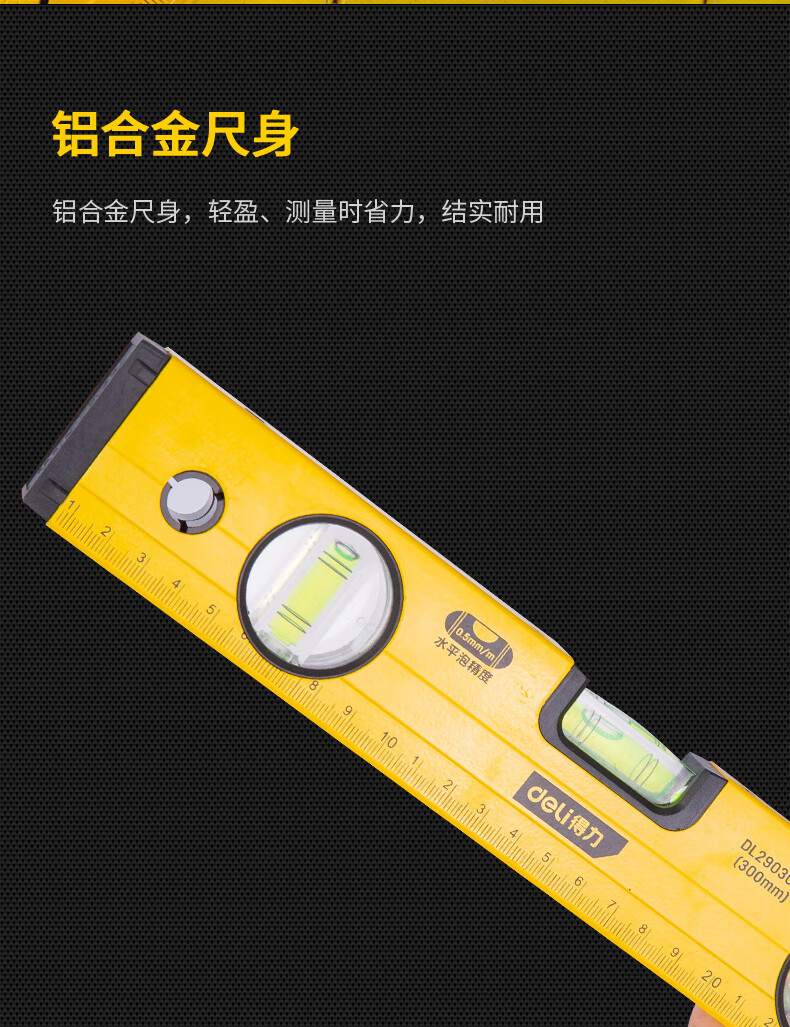 商品名稱:得力DL290300 強(qiáng)磁多角度水平尺 鋁合金水平測(cè)量尺水平儀300mm