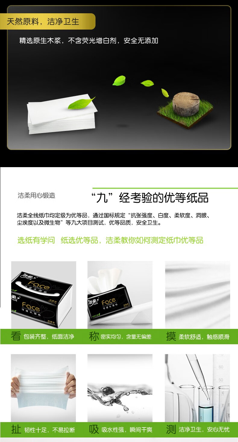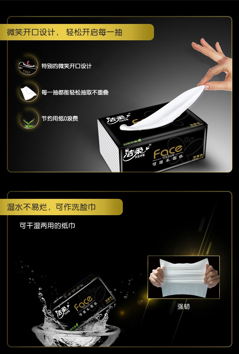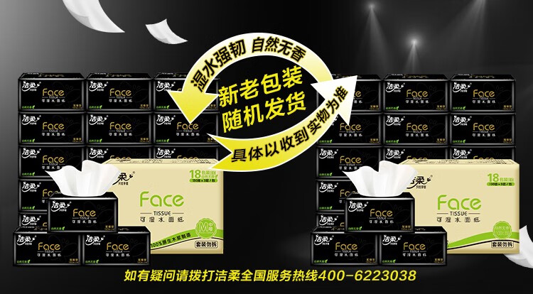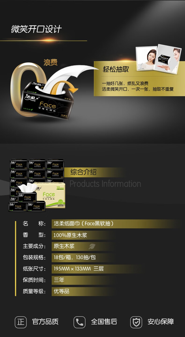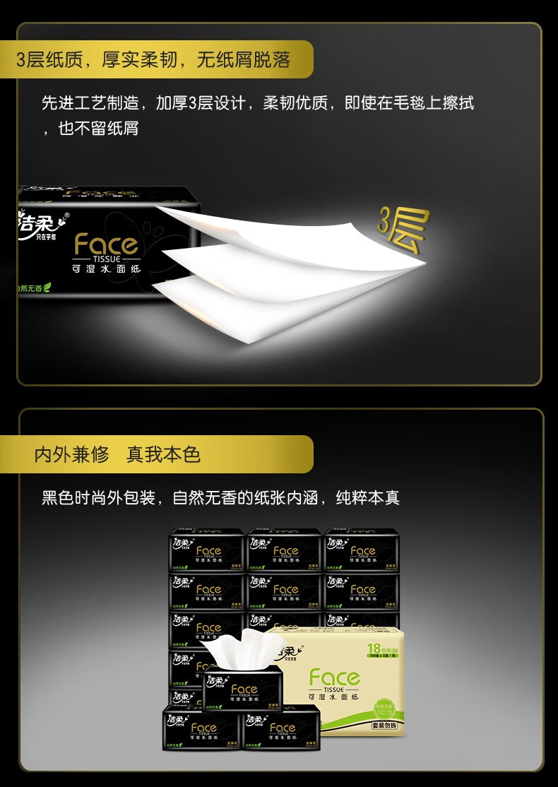 商品名稱:潔柔 抽紙 黑Face3層130抽*18包 濕水強韌 自然無香面巾紙 整箱