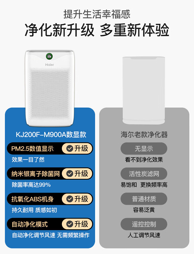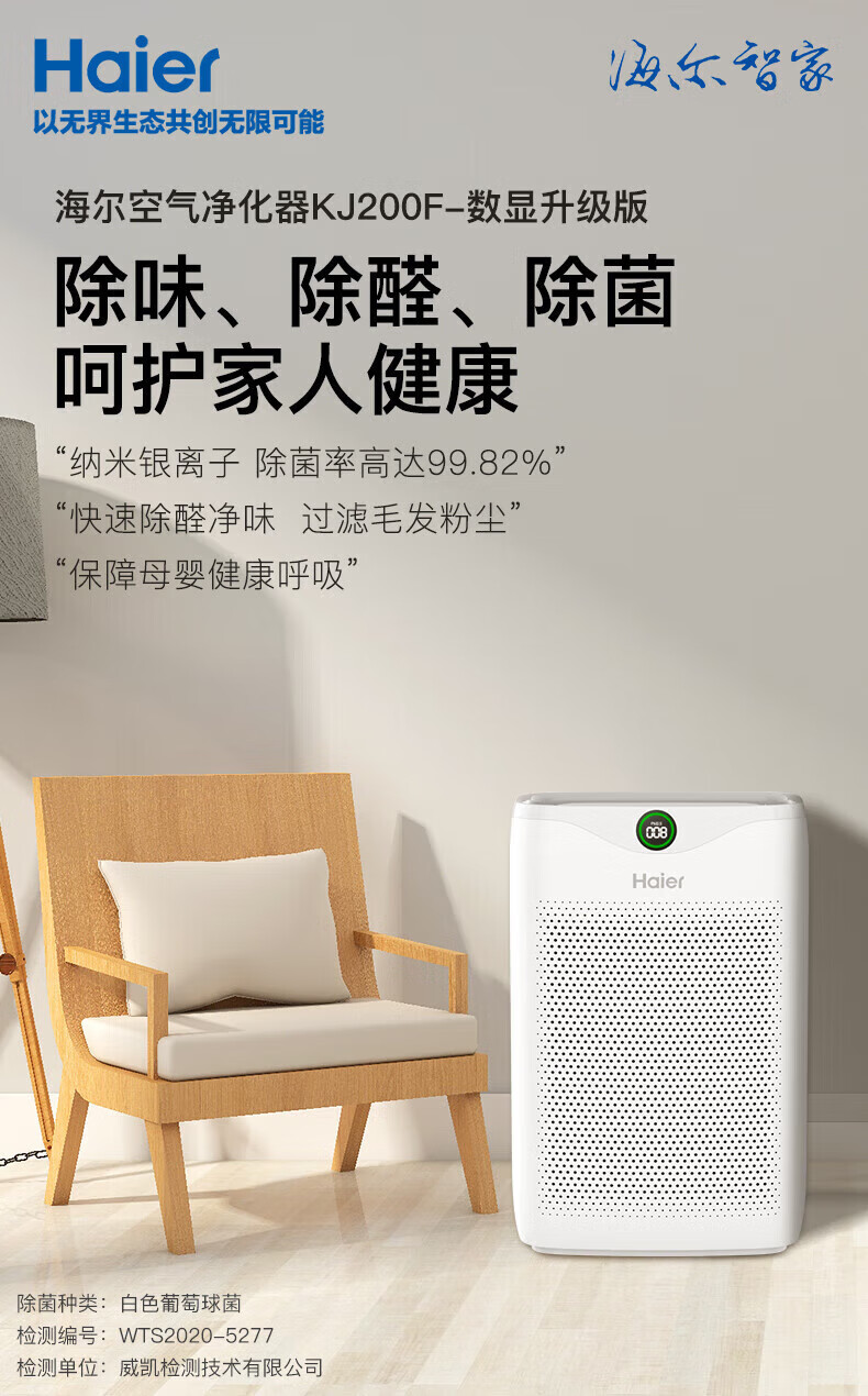 商品名稱:海爾KJ200F-M900A 空氣凈化器 除甲醛除霧霾除煙味母嬰家用除灰塵殺菌