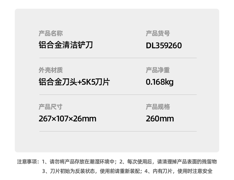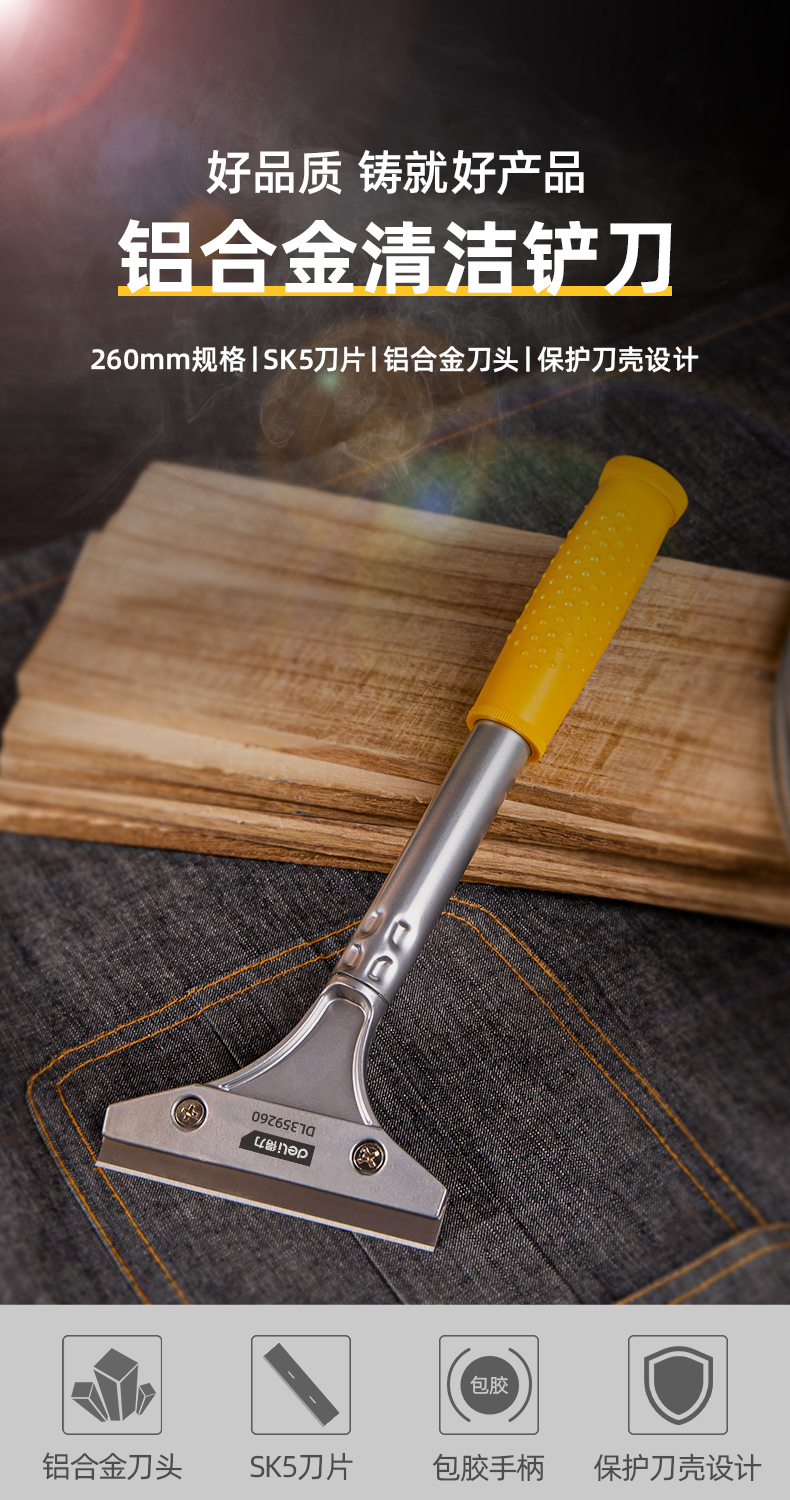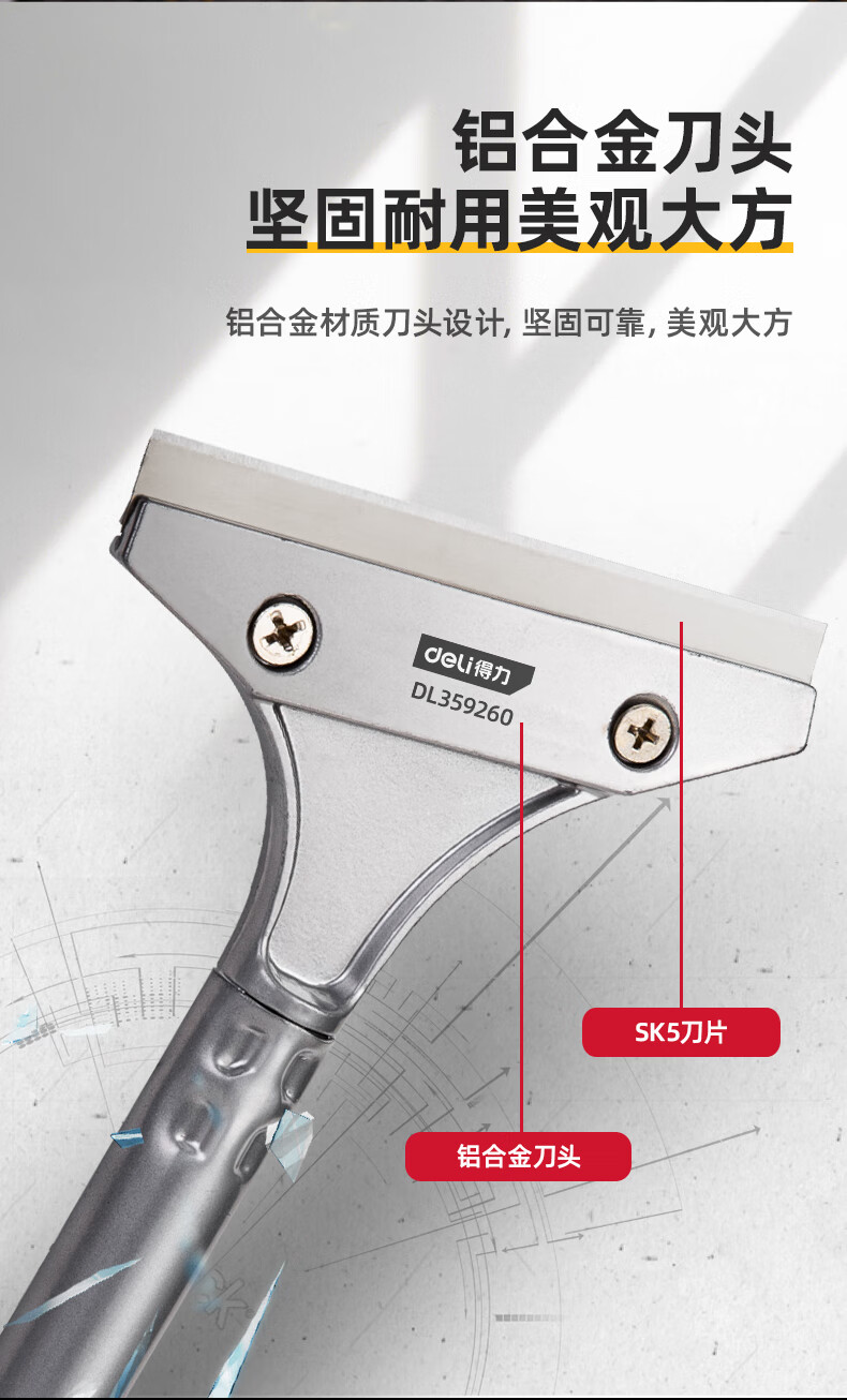 商品名稱:得力DL359260 鏟刀 鋁合金刮污刀玻璃刮刀鏟墻皮地板美縫瓷磚清潔除膠刀260mm