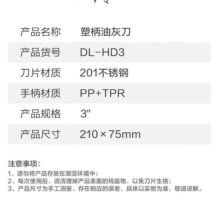 商品名稱:得力DL-HD3 不銹鋼油灰刀 清潔刮刀鏟刀抹灰膩子刀3英寸