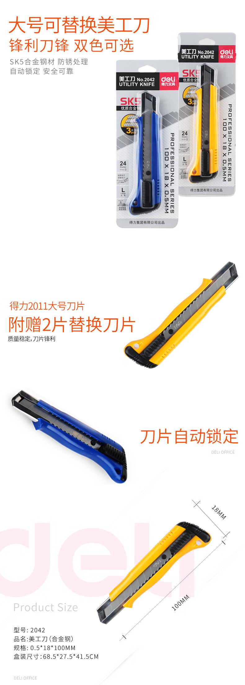 商品名稱:得力2042 美工刀 小號金屬美工刀裁紙刀 顏色隨機