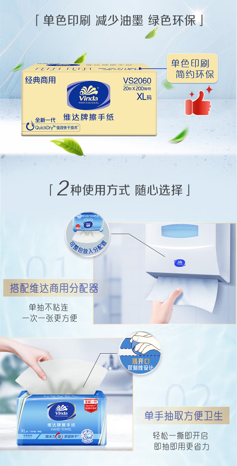 商品名稱:維達(dá)VS2060 擦手紙 1層200抽*20包商用抹手紙抽取式干手紙酒店商場整箱