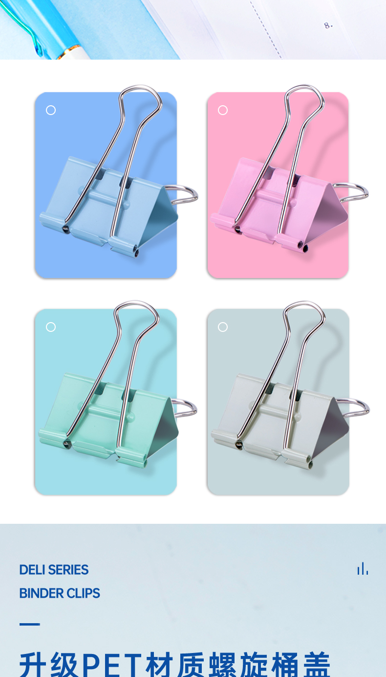 商品名稱:得力8553S 省力長尾夾 3#32mm中號彩色金屬票夾燕尾夾票據(jù)文件夾子 辦公用品 24只/筒