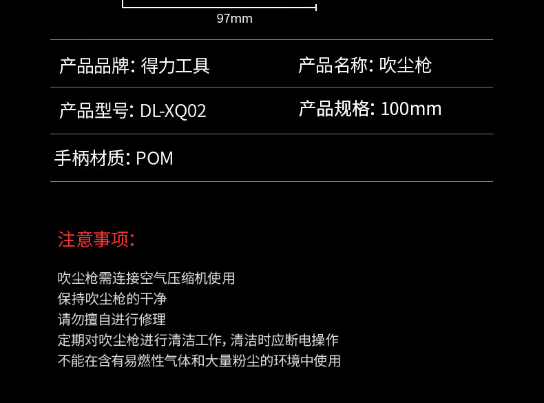 商品名稱:得力DL-XQ02 吹塵槍 230mm高壓空氣去污吹氣吹風(fēng)槍除塵吹塵槍430L/min