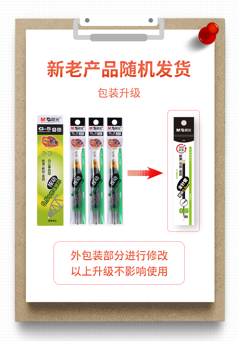 商品名稱:晨光G-5 中性筆芯 0.5mm按動(dòng)子彈頭簽字筆替芯 水筆芯 1008/K35/S01/S08適用 20支/盒
