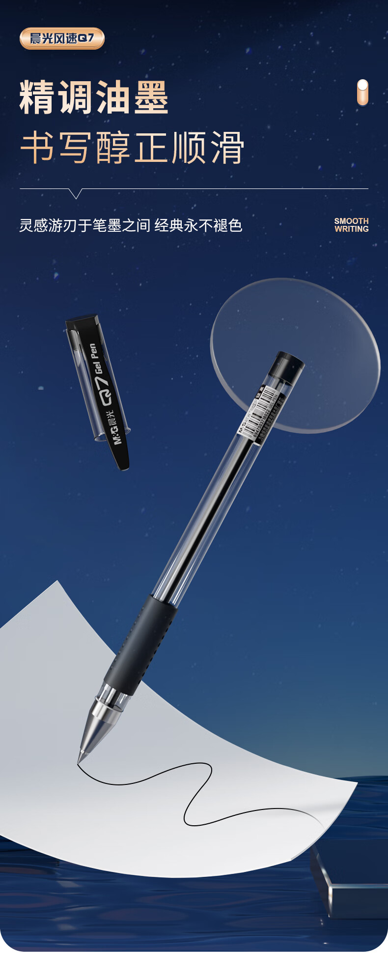 商品名稱:晨光 經(jīng)典風(fēng)速Q(mào)7 黑色中性筆 0.7mm子彈頭簽字筆 學(xué)生/辦公用筆 拔蓋水筆 12支/盒
