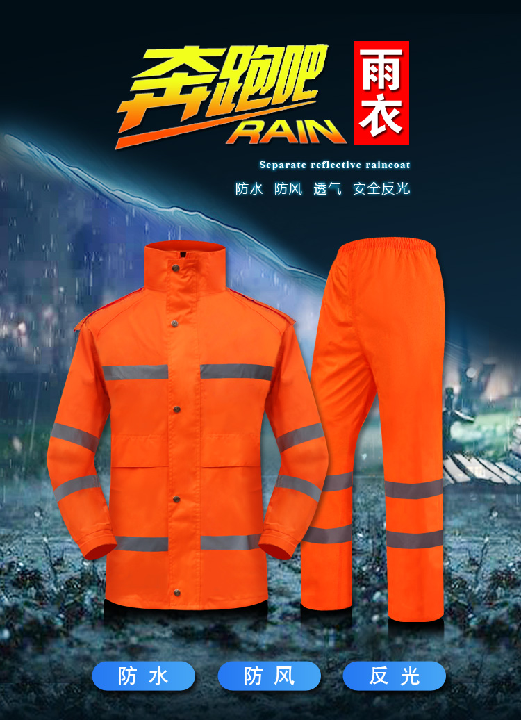 商品名稱(chēng):謀福8029 安全反光分體執(zhí)勤雨衣套裝 透氣路政戶(hù)外成人騎行交通警示雨衣