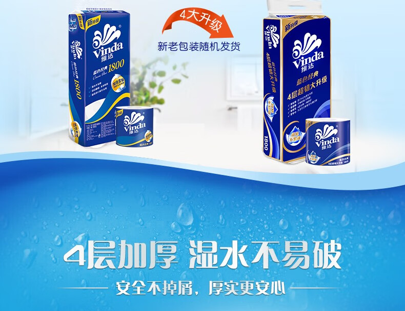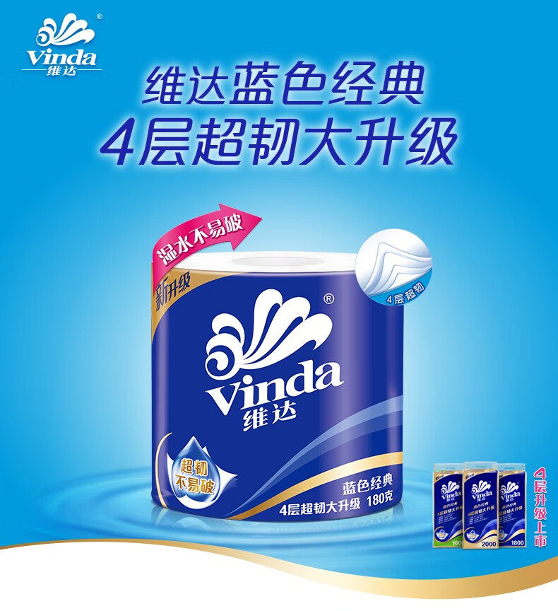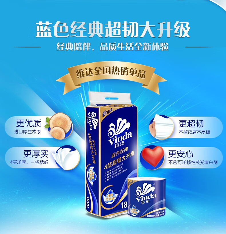 商品名稱:維達(dá)V4028 藍(lán)色經(jīng)典系列有芯卷紙 家用廁紙衛(wèi)生紙 4層180克*10卷/提