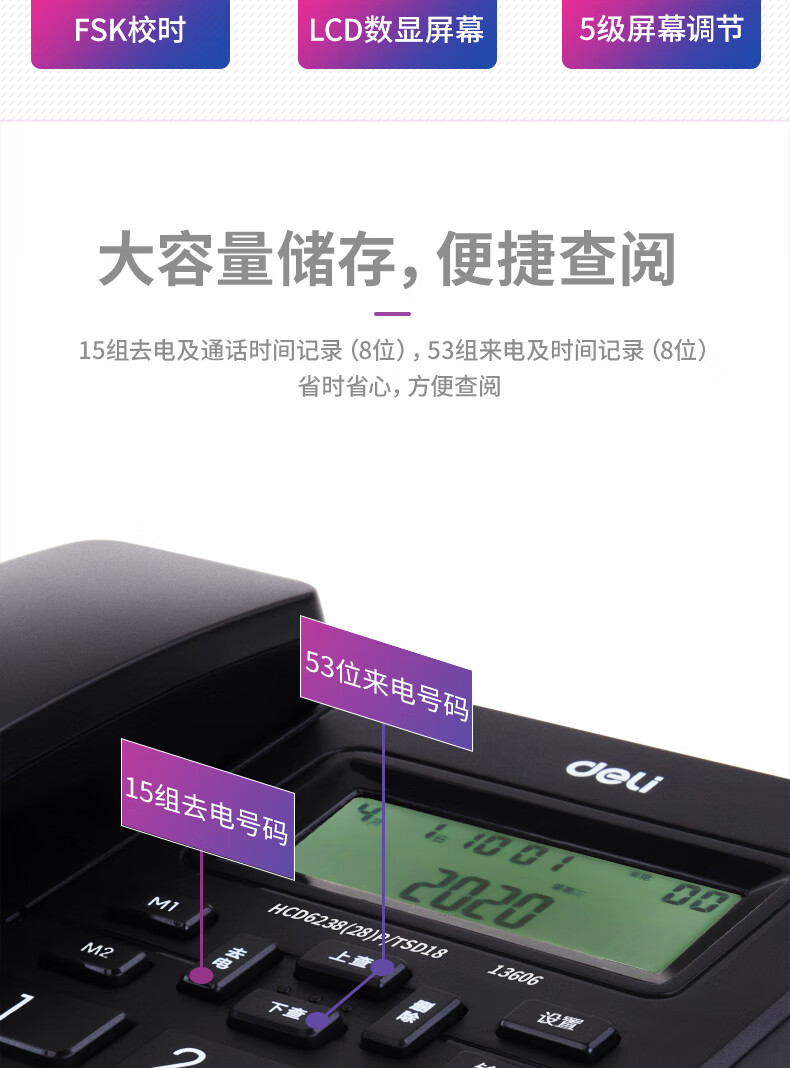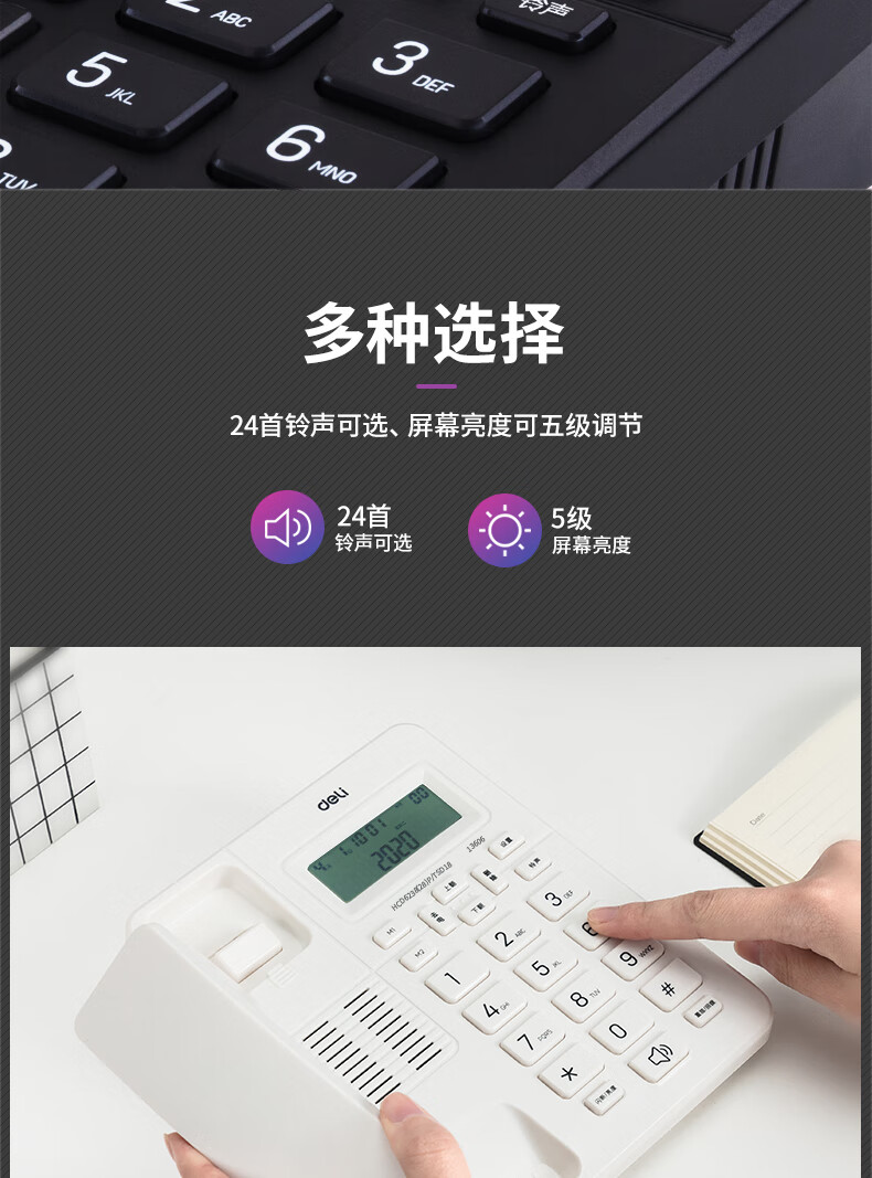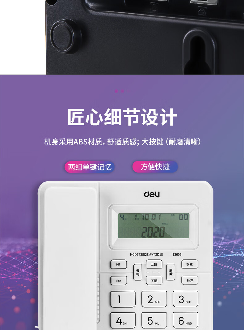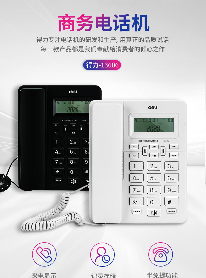 商品名稱:得力 電話機(jī)座機(jī) 固定電話 辦公家用 來(lái)去電查詢 可接分機(jī) 13606白
