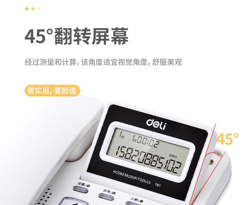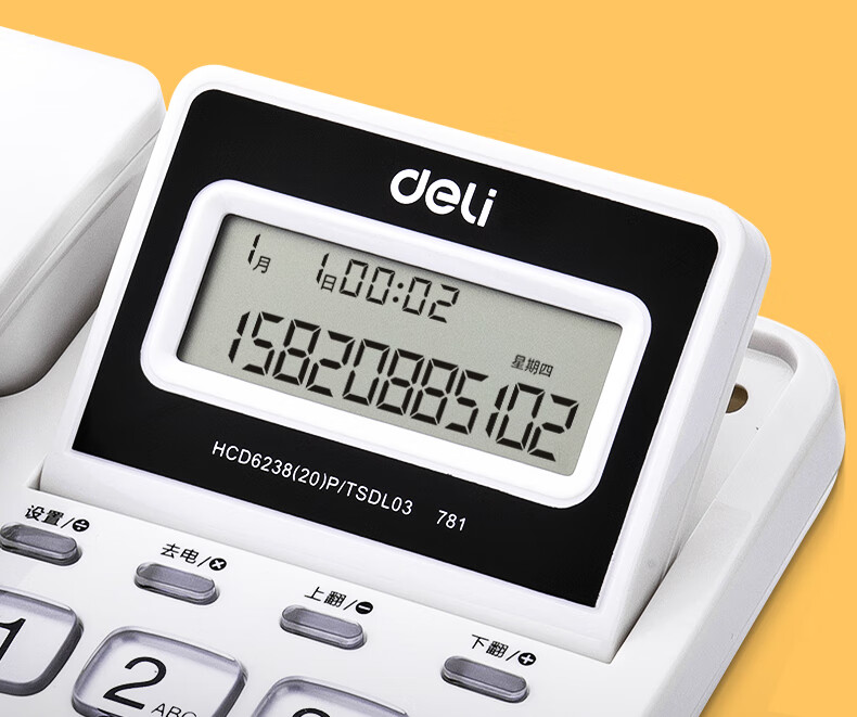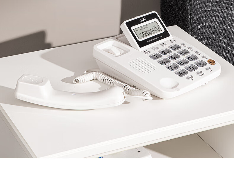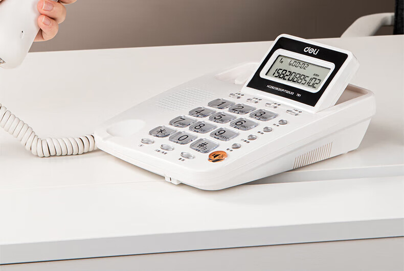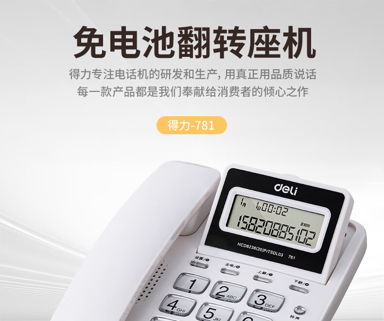 商品名稱:得力 電話機(jī)座機(jī) 固定電話 辦公家用 翻轉(zhuǎn)屏幕 免電池 781白