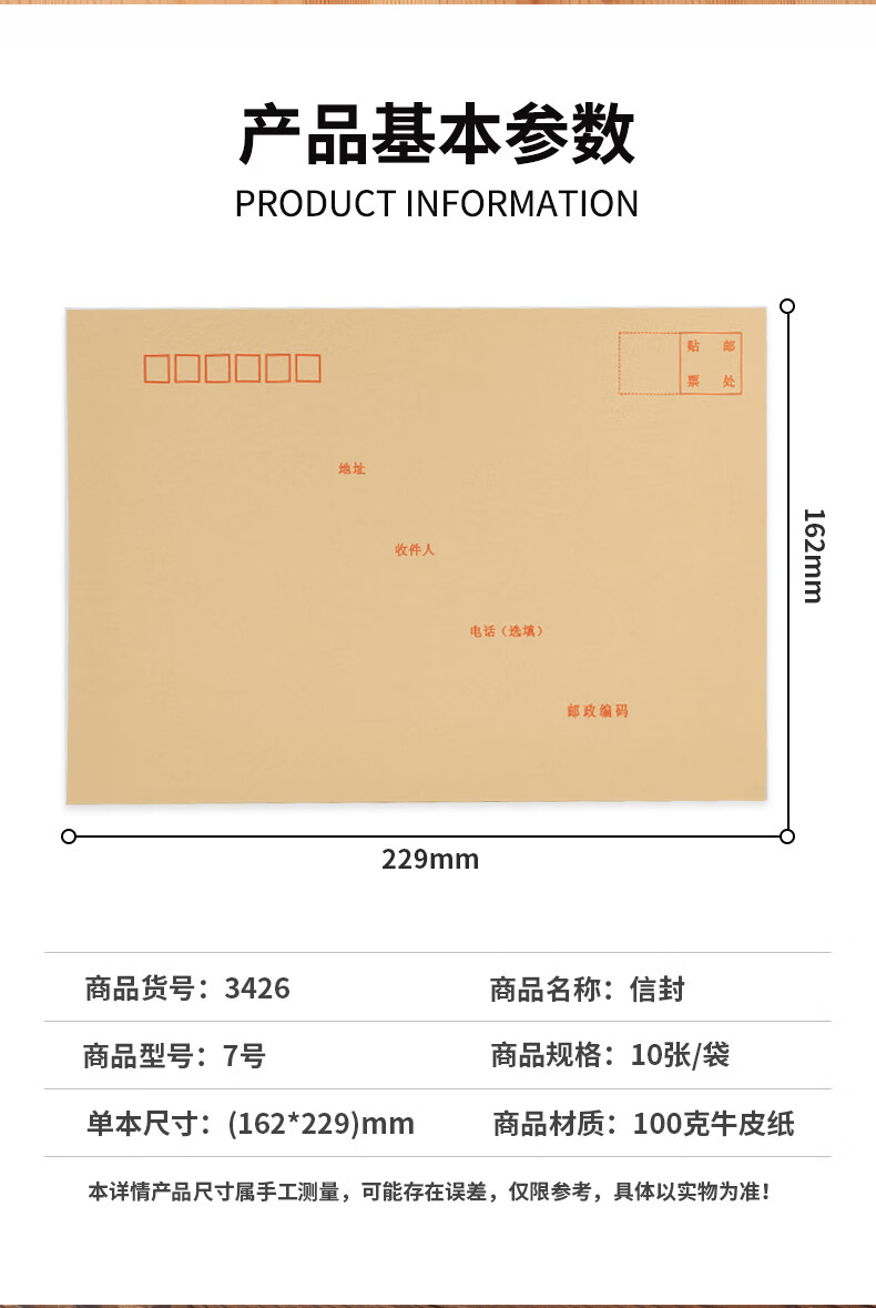 商品名稱:得力 3426 7號(hào)牛皮紙信封 郵局標(biāo)準(zhǔn)信封229*162mm 10張/包
