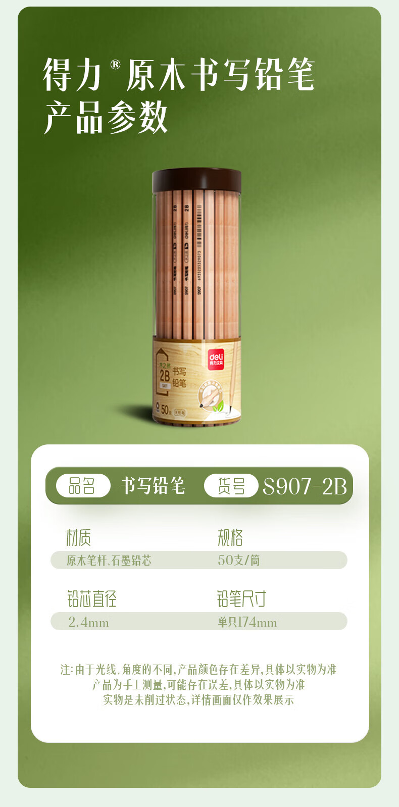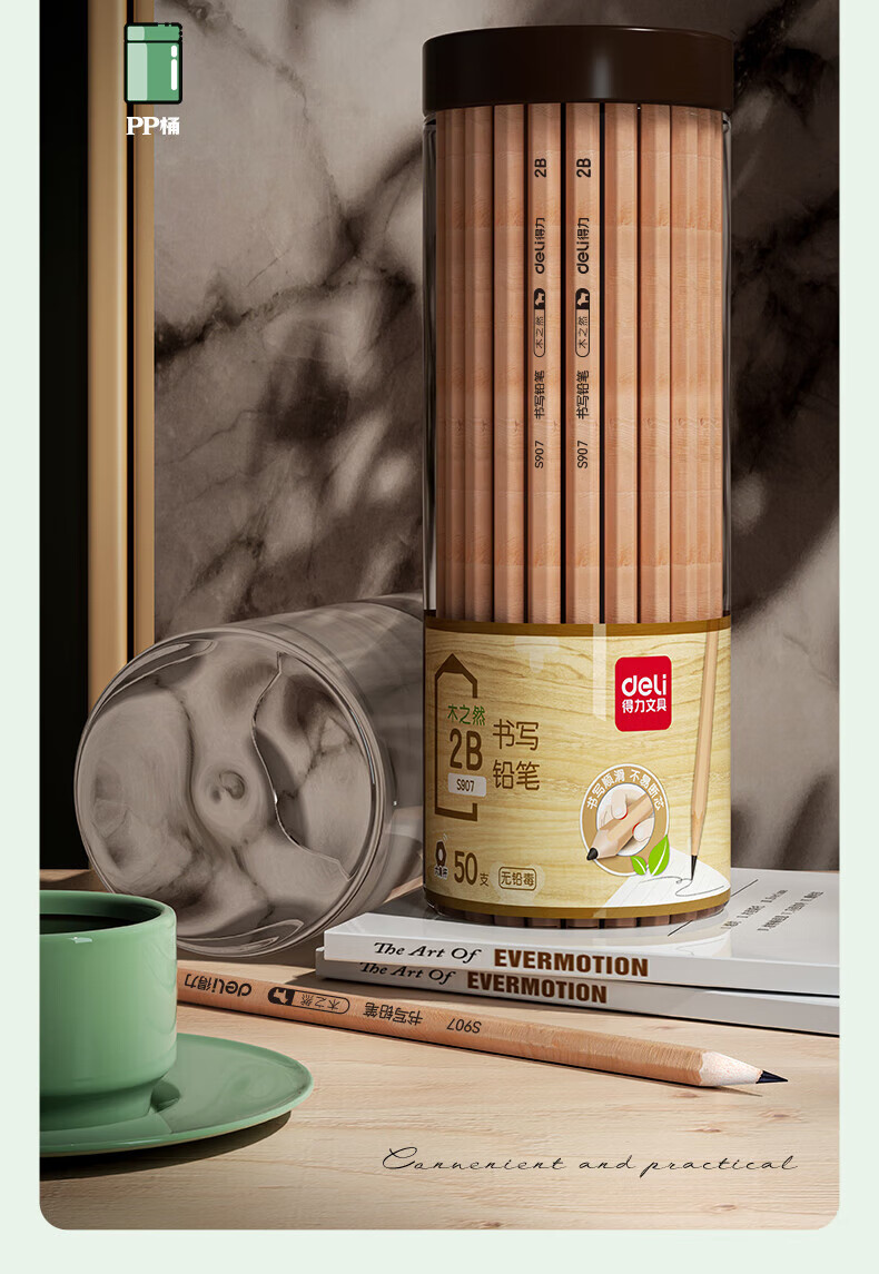 商品名稱(chēng):得力S907 原木鉛筆 木之然系列六角筆桿2B鉛筆/考試專(zhuān)用學(xué)生鉛筆 50支/桶