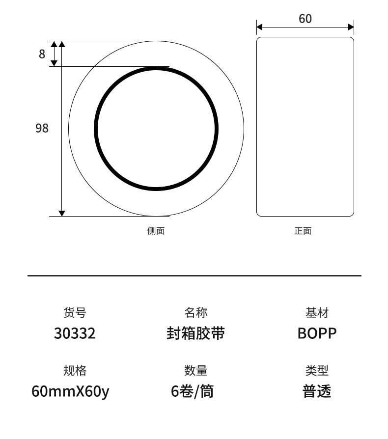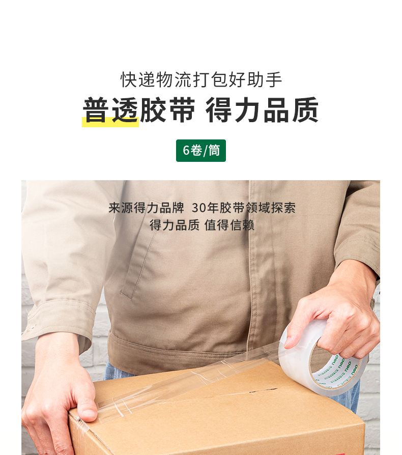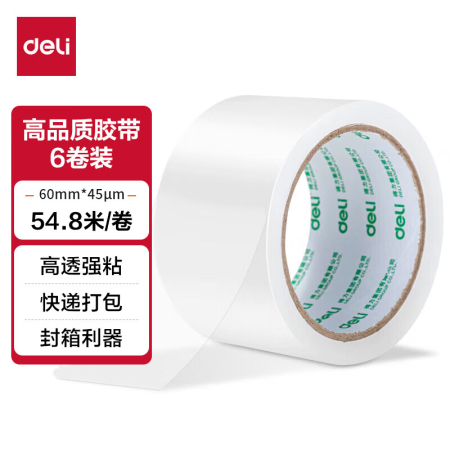 商品名稱:得力30332 高品質透明封箱膠帶/打包膠帶 60mm*60y 6卷/筒 辦公用品