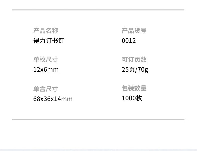 商品名稱:得力0012 高強度訂書釘 12#24/6訂書針 可訂25頁 1000枚/盒