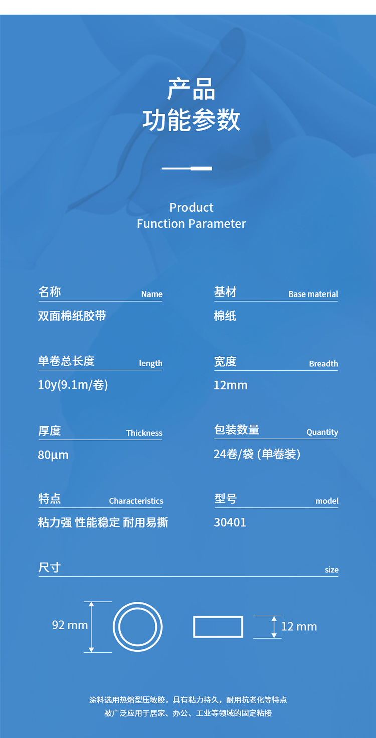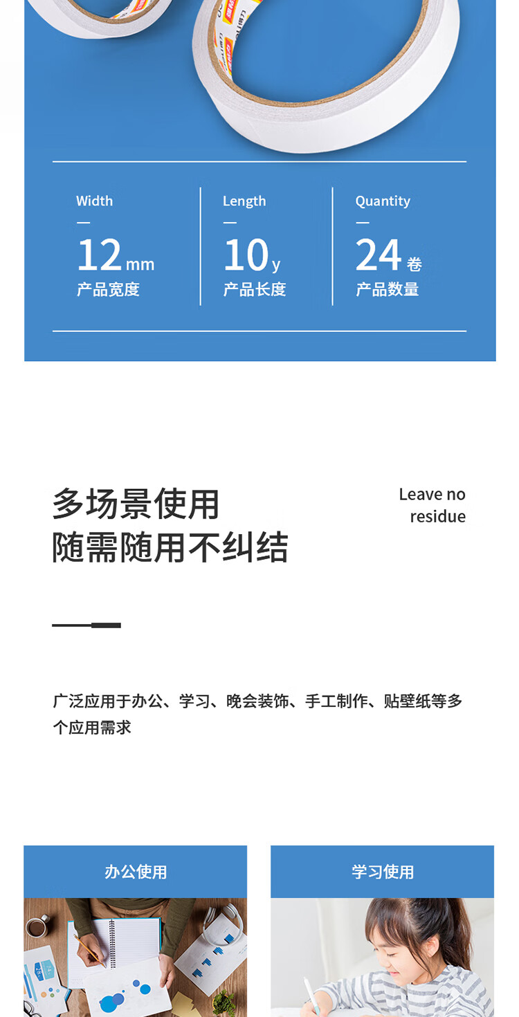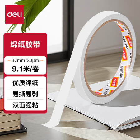 商品名稱:得力30401 高粘棉紙雙面膠帶 12mm*10y(9.1m/卷) 白色 辦公用品 單卷裝