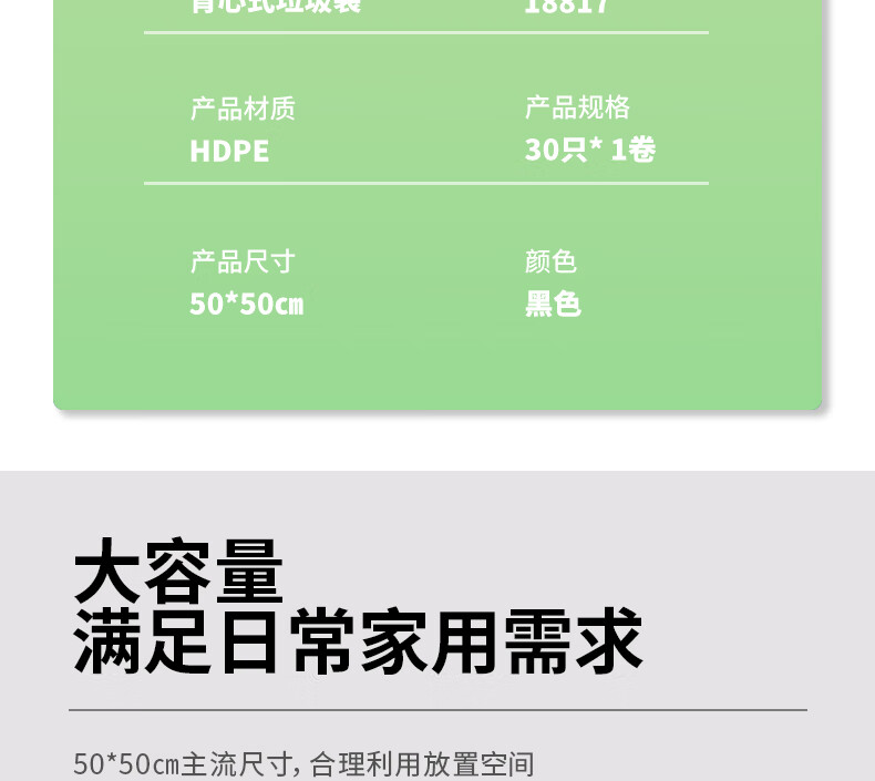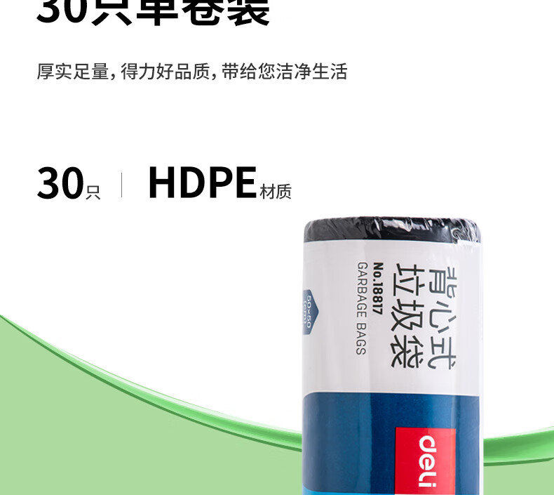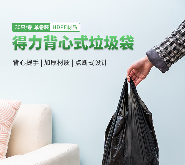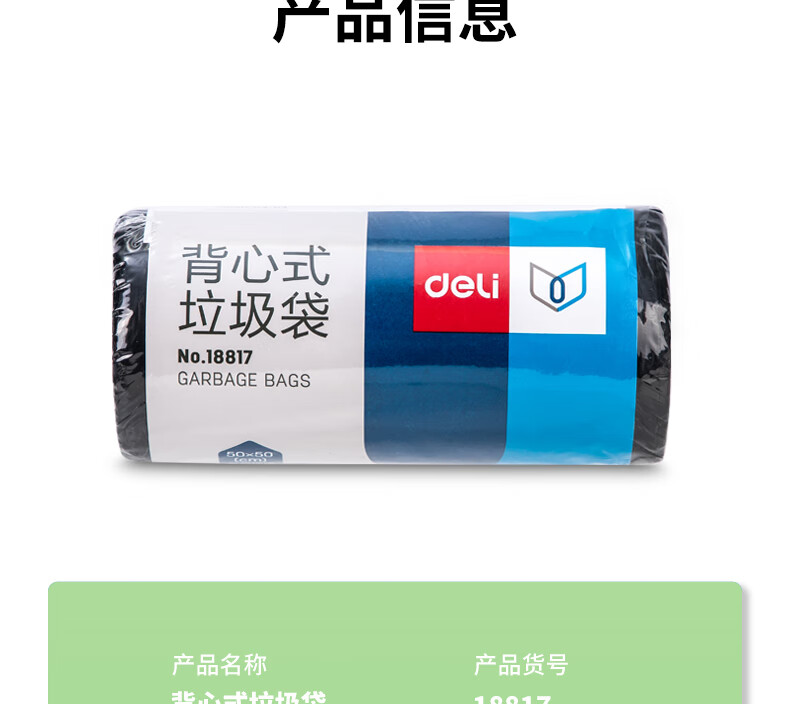 商品名稱:得力18817 背心式垃圾袋 50*50CM 30只/卷 (黑)(單卷裝)