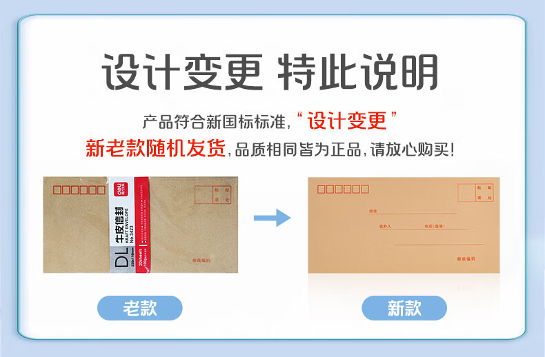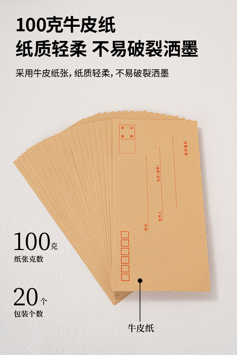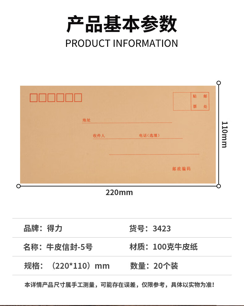 商品名稱:得力3423 牛皮紙信封 5號郵局標準信封220*110mm 20張/包