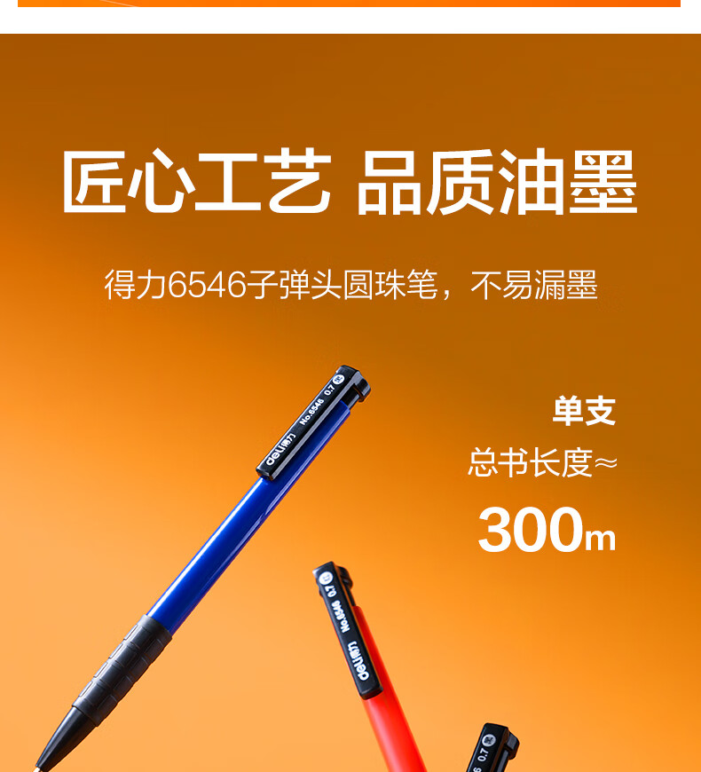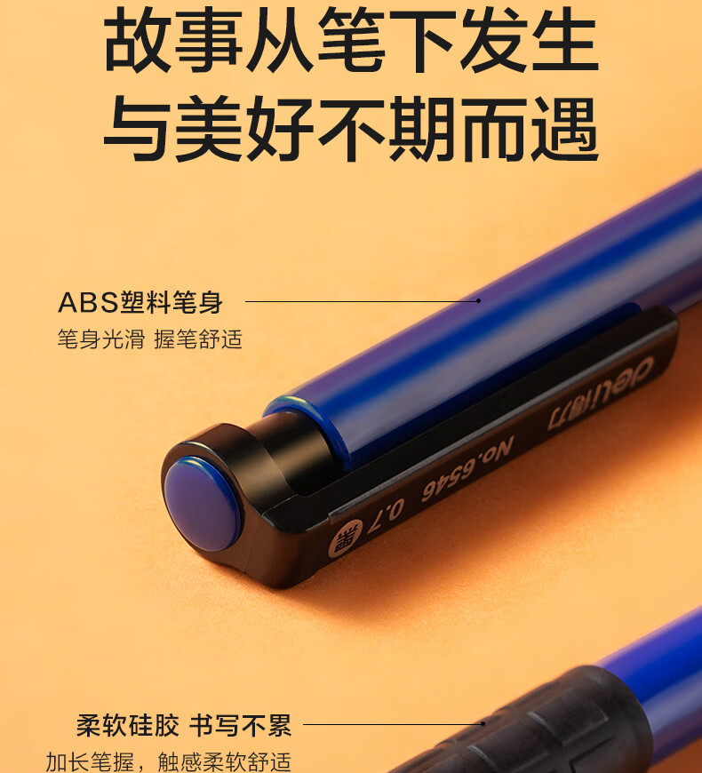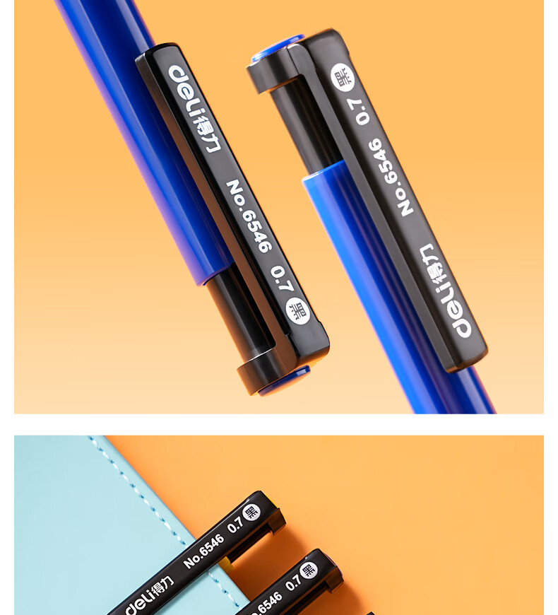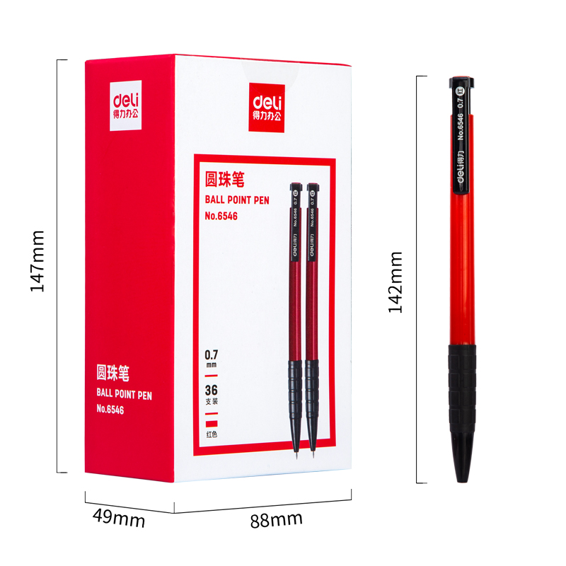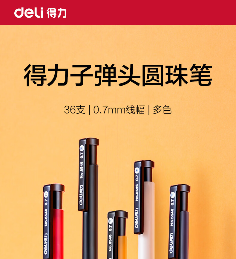 商品名稱:得力6546 圓珠筆 中油筆 0.7mm子彈頭軟膠握手原子筆按動筆 辦公用品 36支/盒