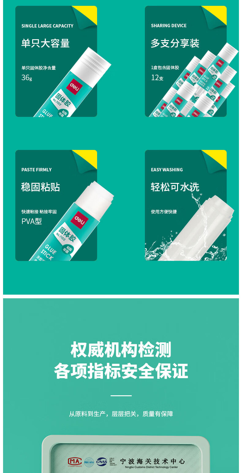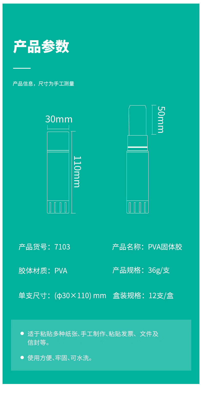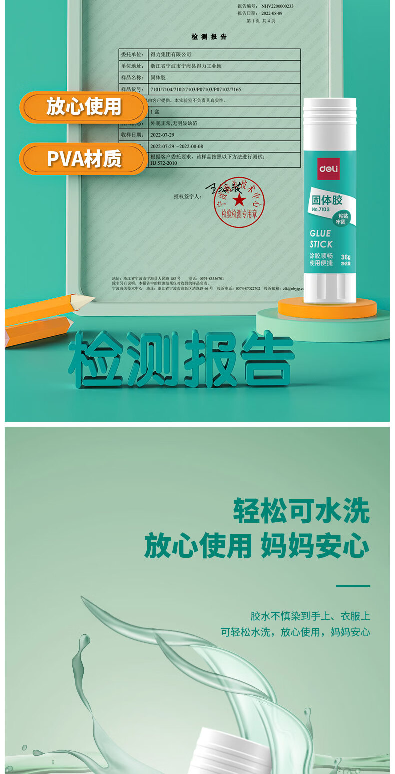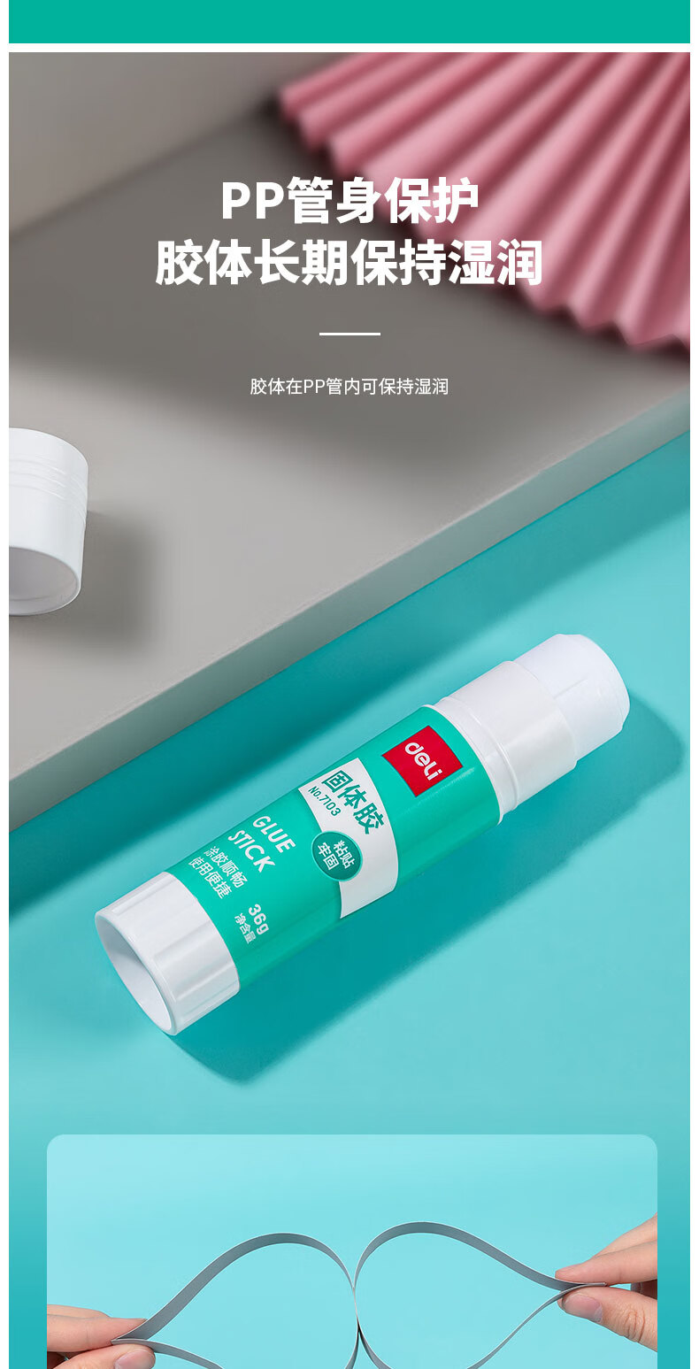 商品名稱:得力7103 固體膠水 36g高粘度PVA膠棒 速干耐用可水洗膠棒 單支裝