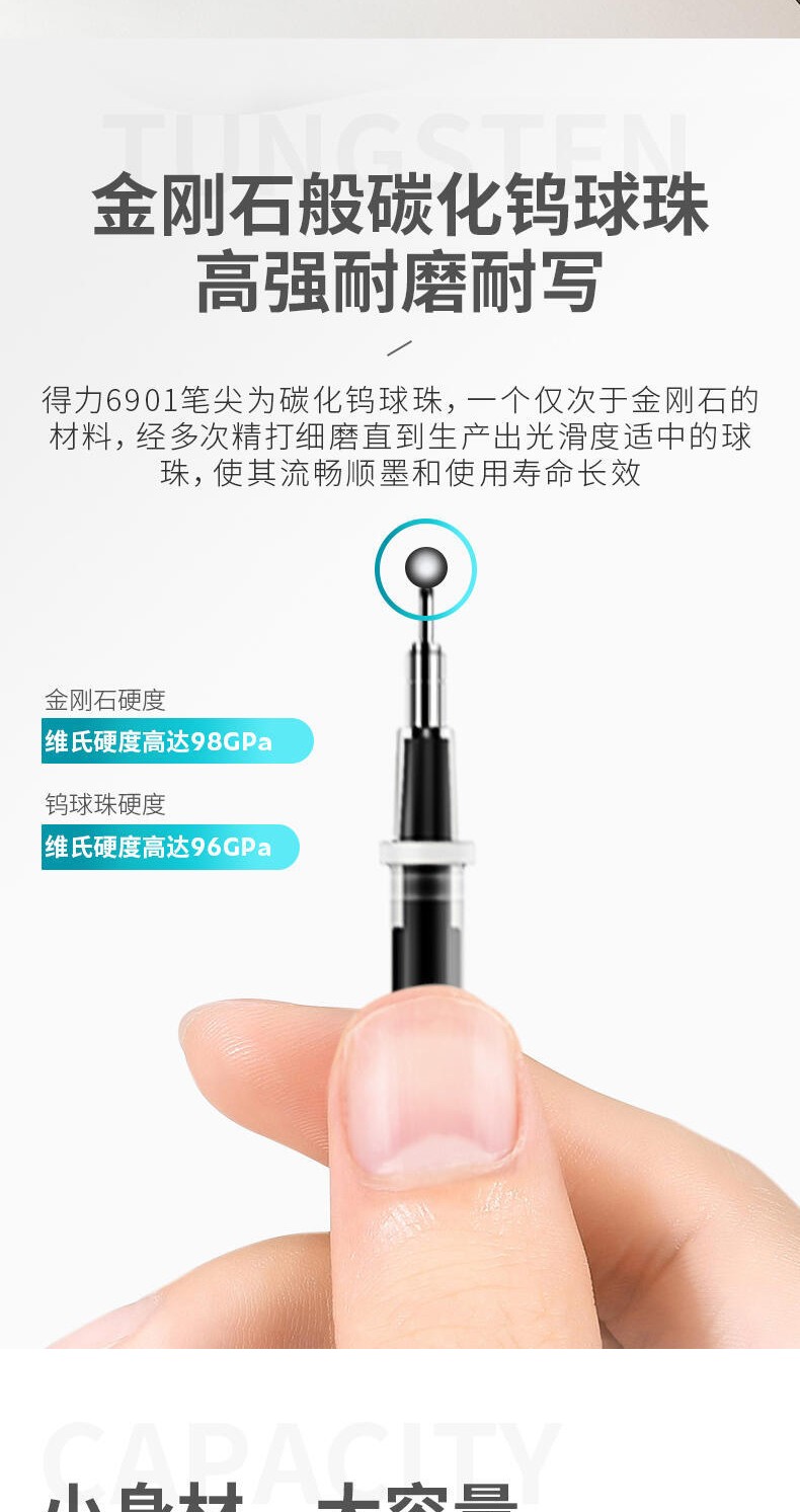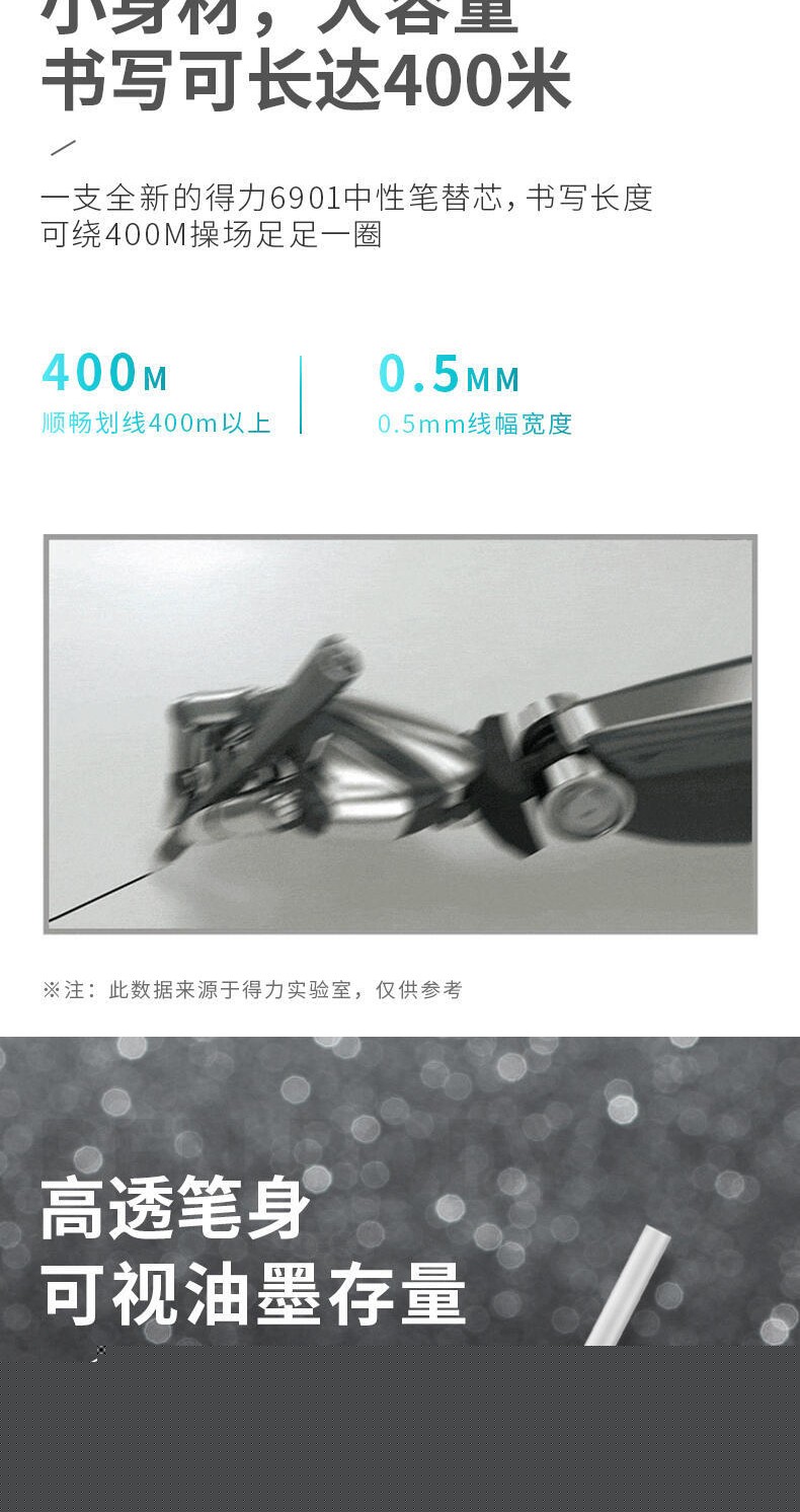 商品名稱:得力6901 筆芯 0.5mm半針管中性筆水筆簽字筆替芯 辦公用品 20支/盒