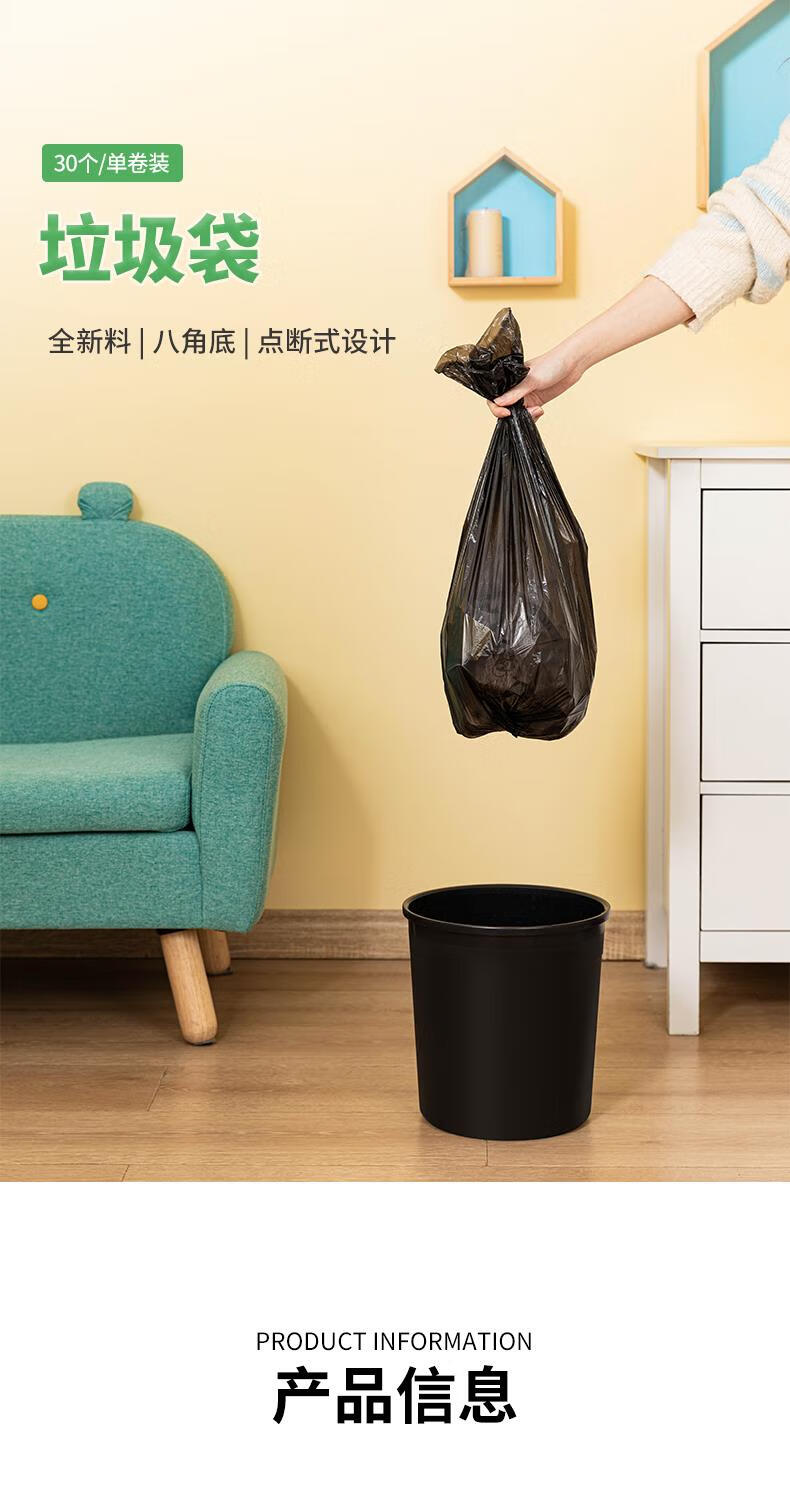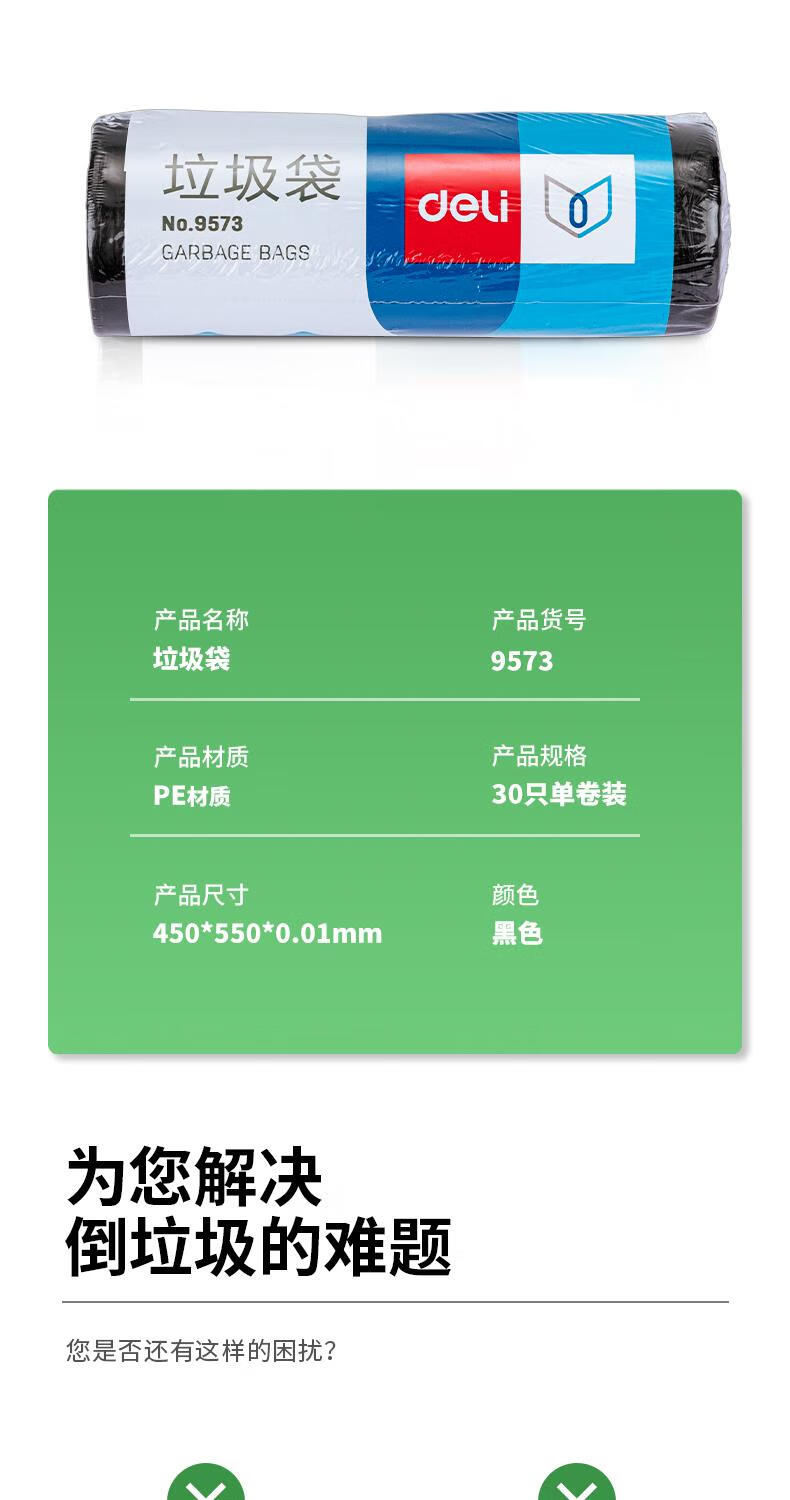 商品名稱:得力9573 垃圾袋 家用辦公加厚塑料袋垃圾袋 30只/卷