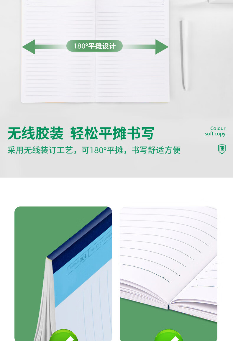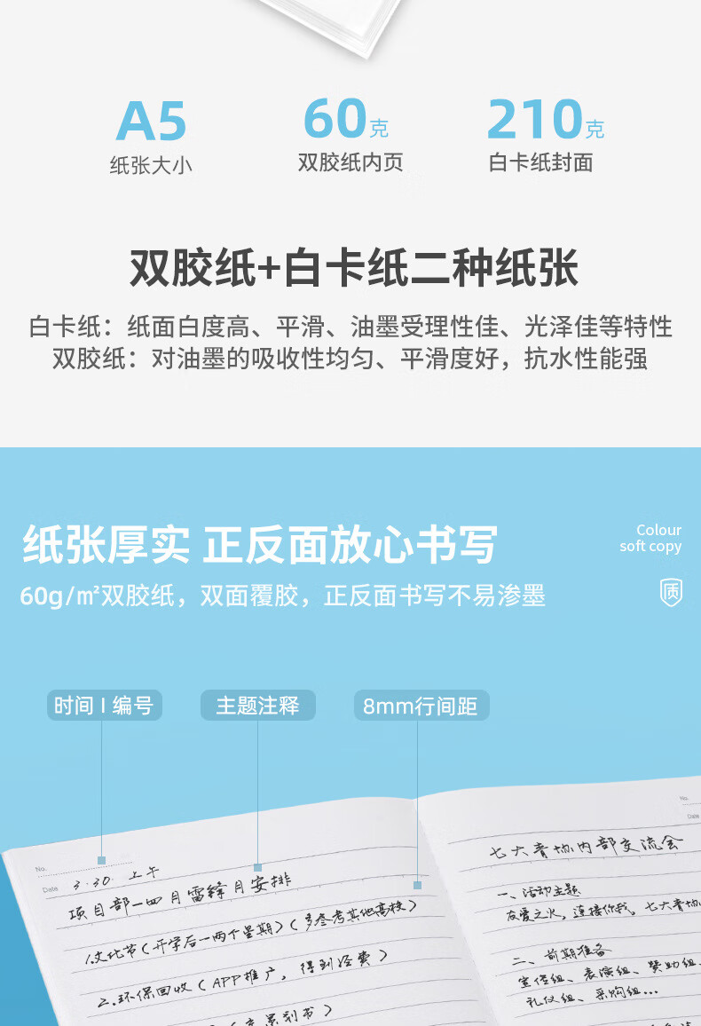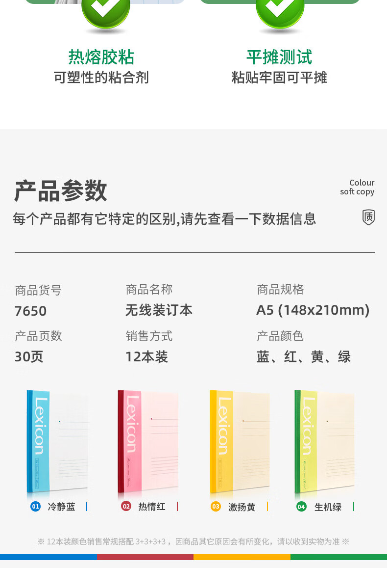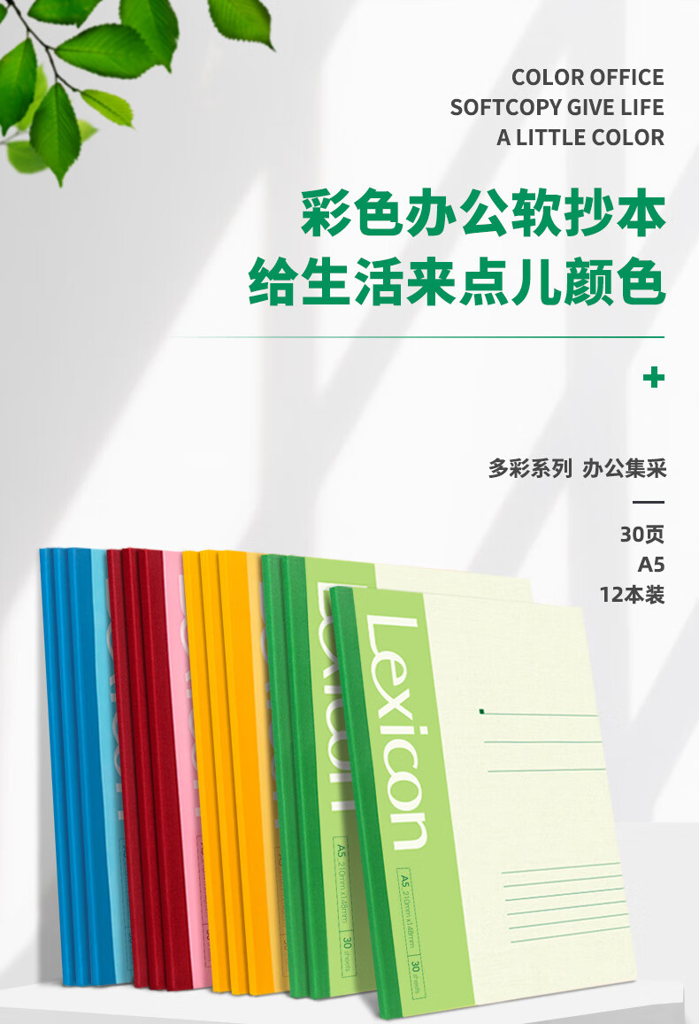 商品名稱:得力7650 軟抄本 A5/30張無線裝訂記事本工作筆記本子 12本/包