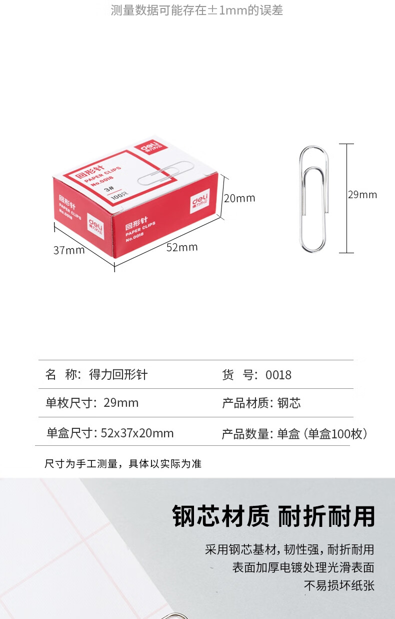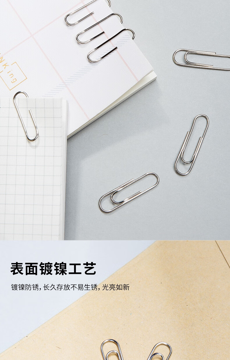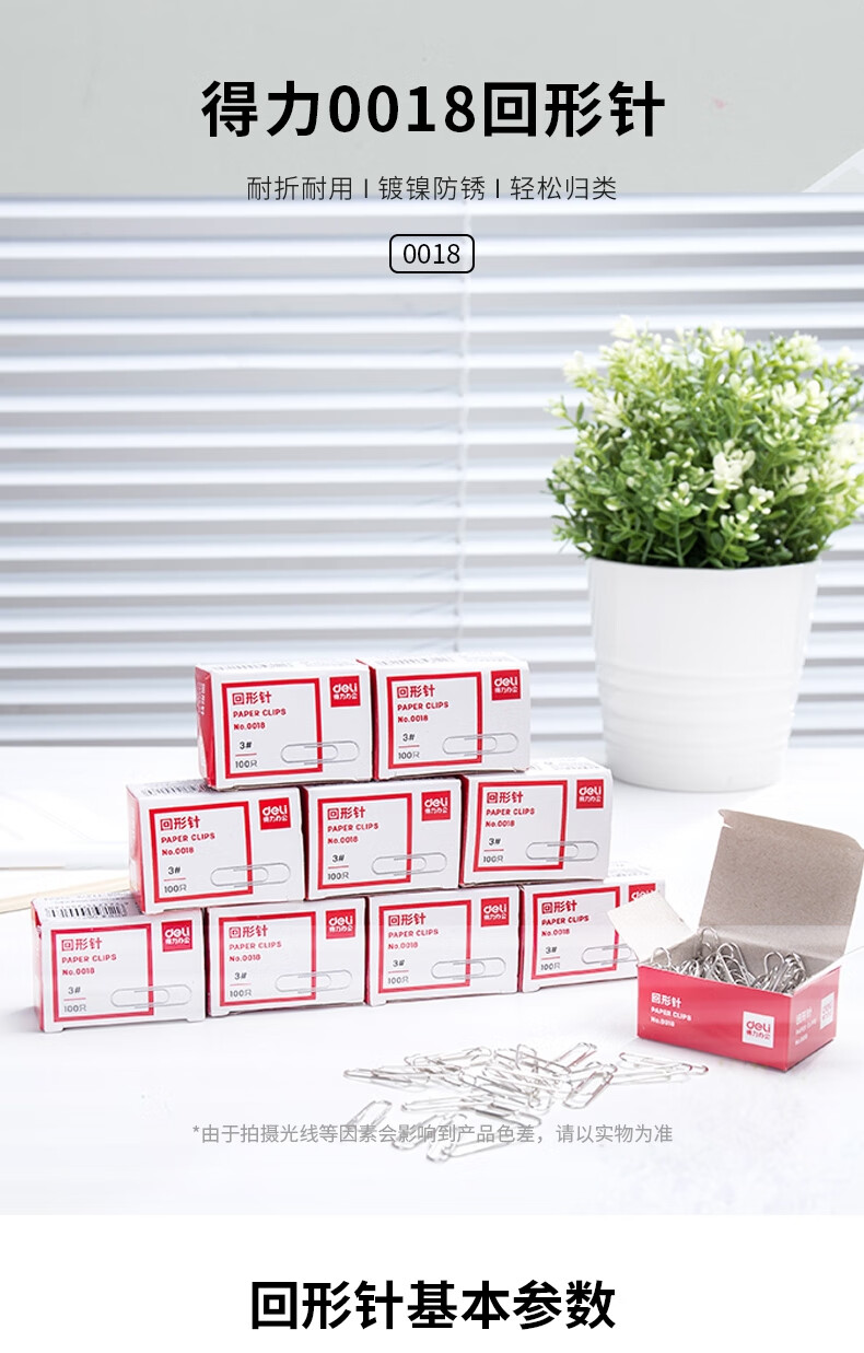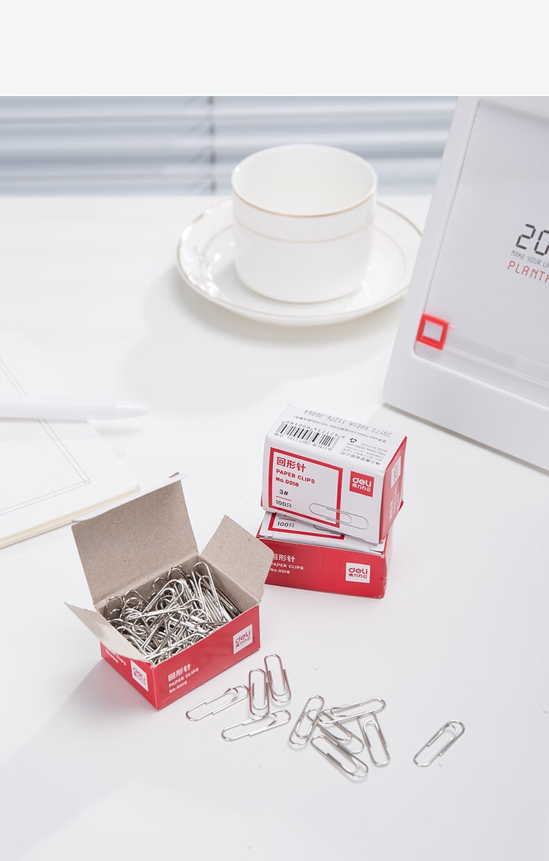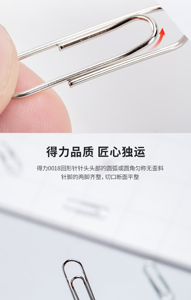 商品名稱:得力0018 回形針 3#鍍鎳防銹曲別針 (100枚/盒)
