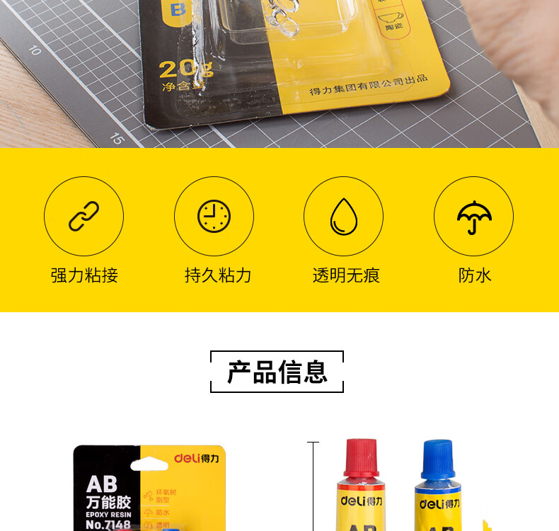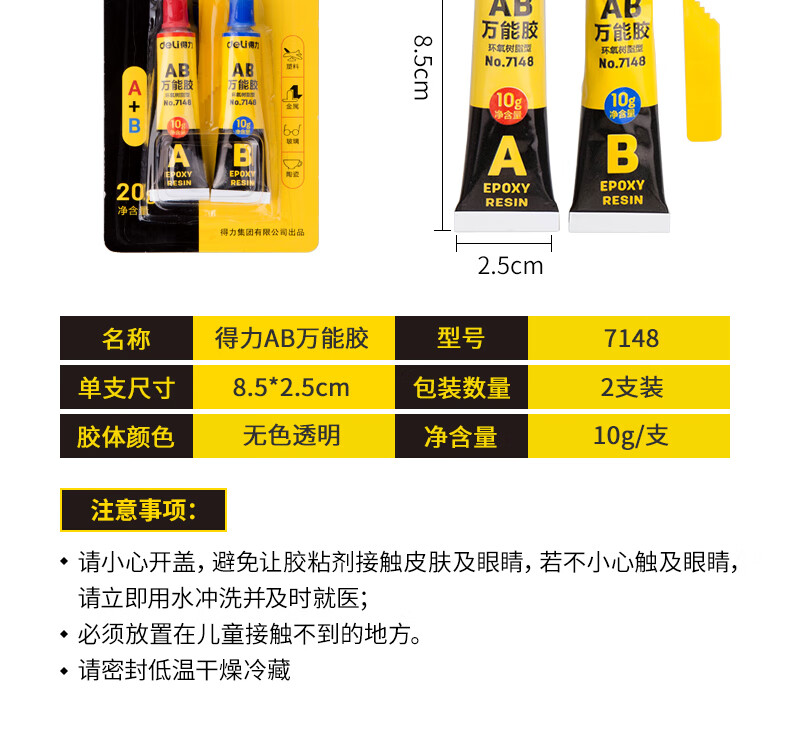 商品名稱:得力7148 AB膠 20g萬能膠粘劑 單位:卡