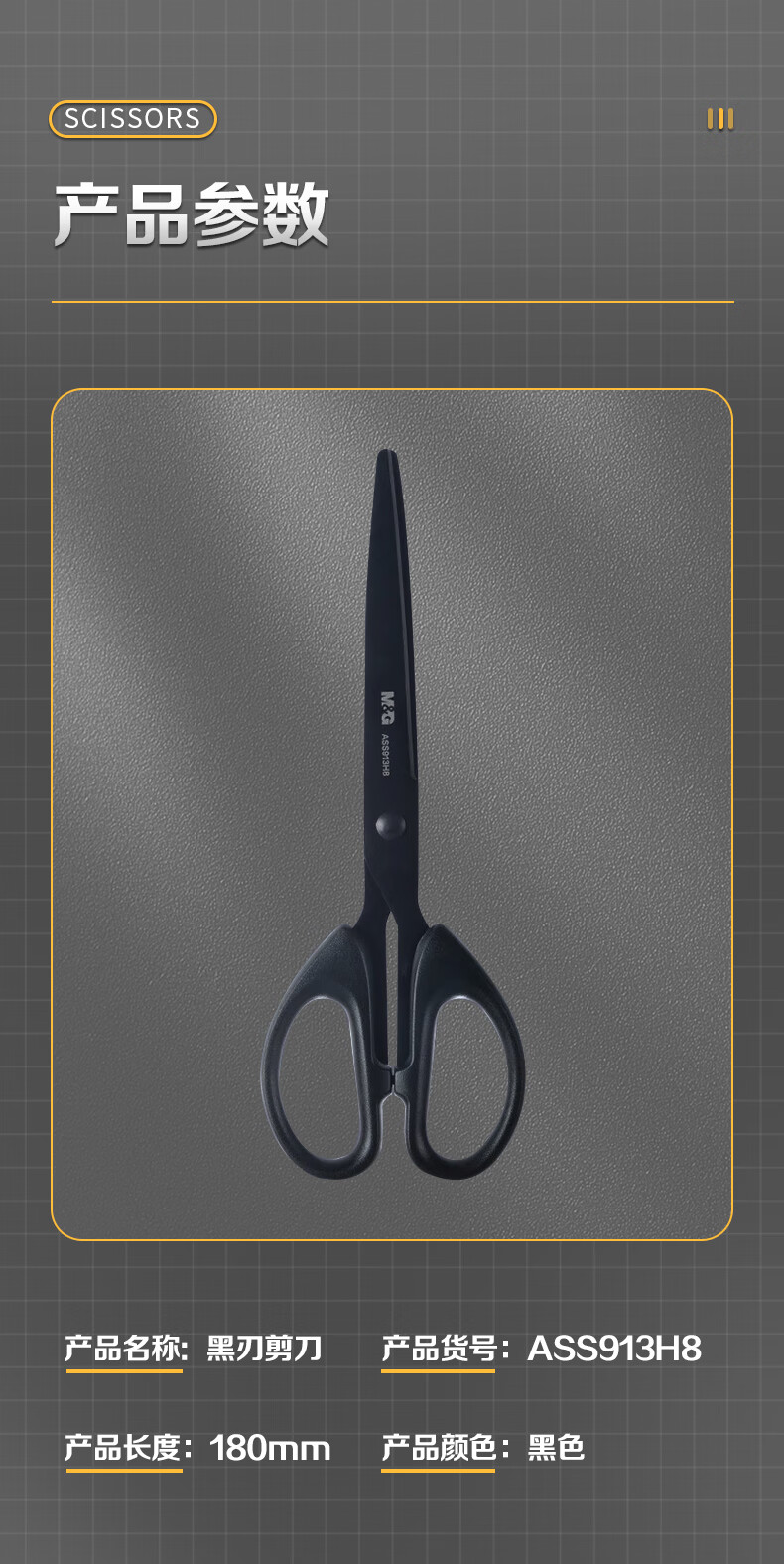 商品名稱:晨光ASS913H8 黑刃剪刀 180mm大號(hào)不銹鋼刀刃不易粘膠耐用剪刀 辦公用品 單把裝