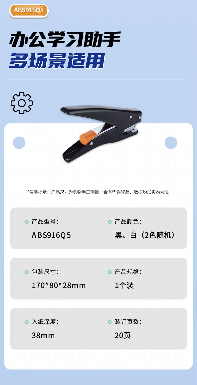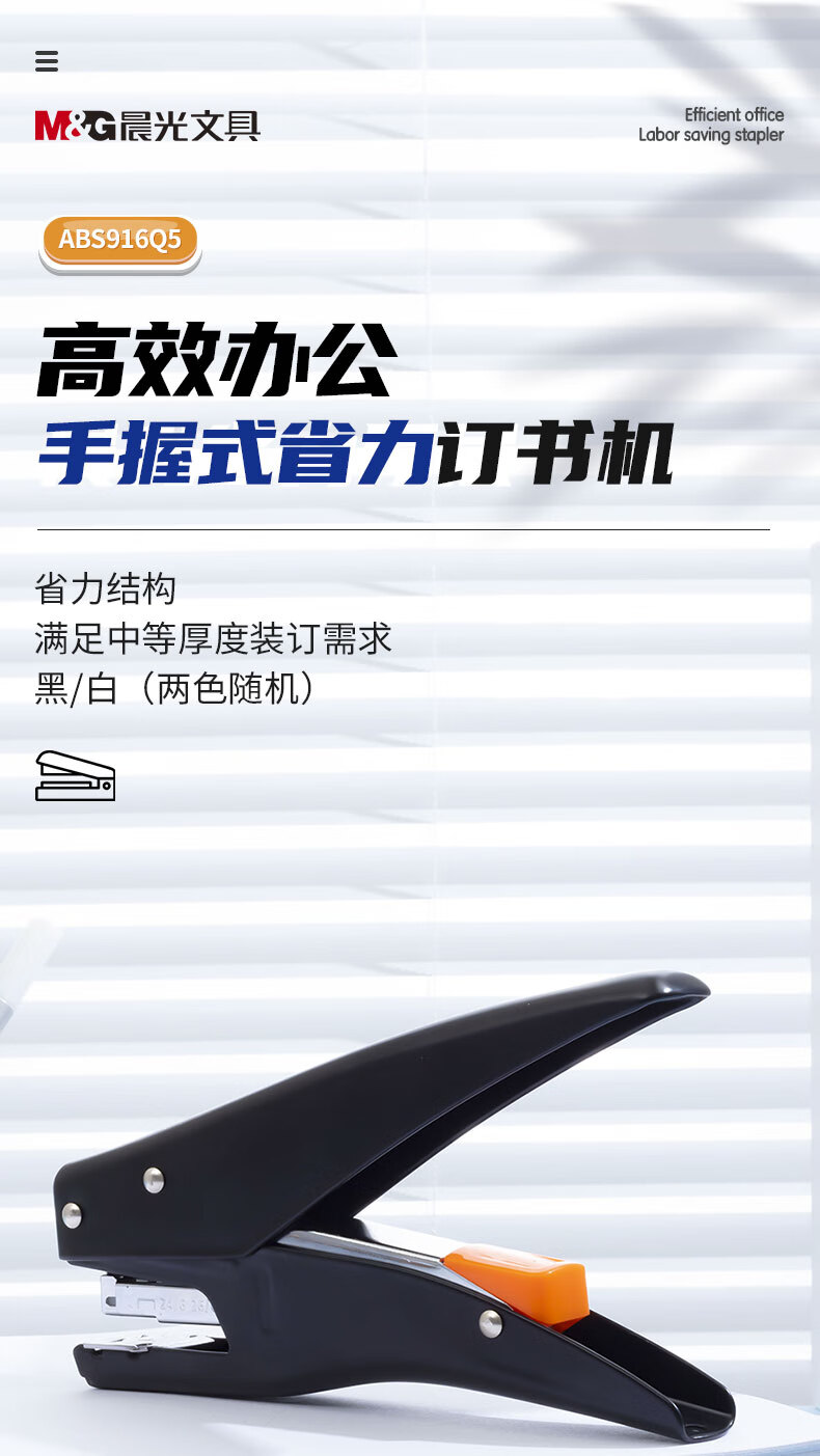 商品名稱:晨光ABS916Q5 12#訂書(shū)機(jī) 手握式彈出式省力訂書(shū)器 小型辦公用品 單個(gè)裝 顏色隨機(jī)