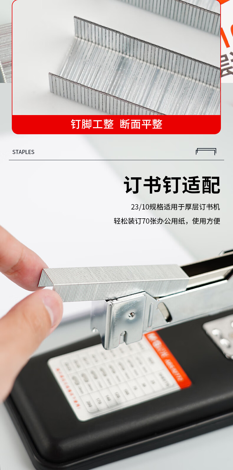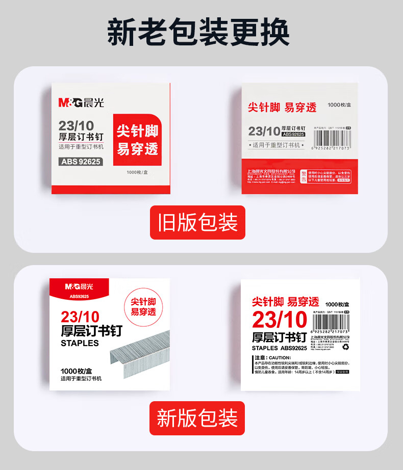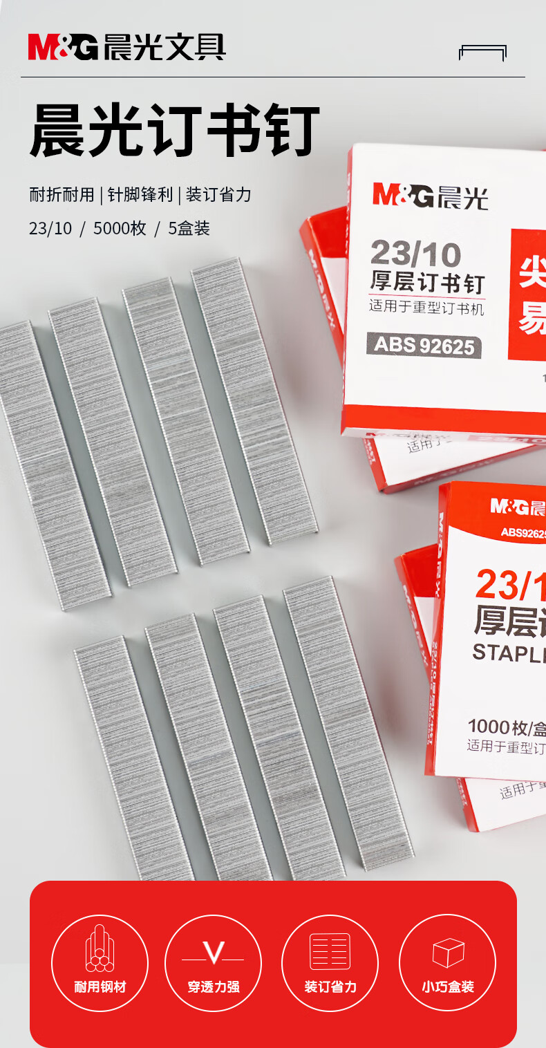 商品名稱:晨光ABS92625 訂書釘 23/10號厚層易穿透重型訂書針 1000枚/盒 5盒裝