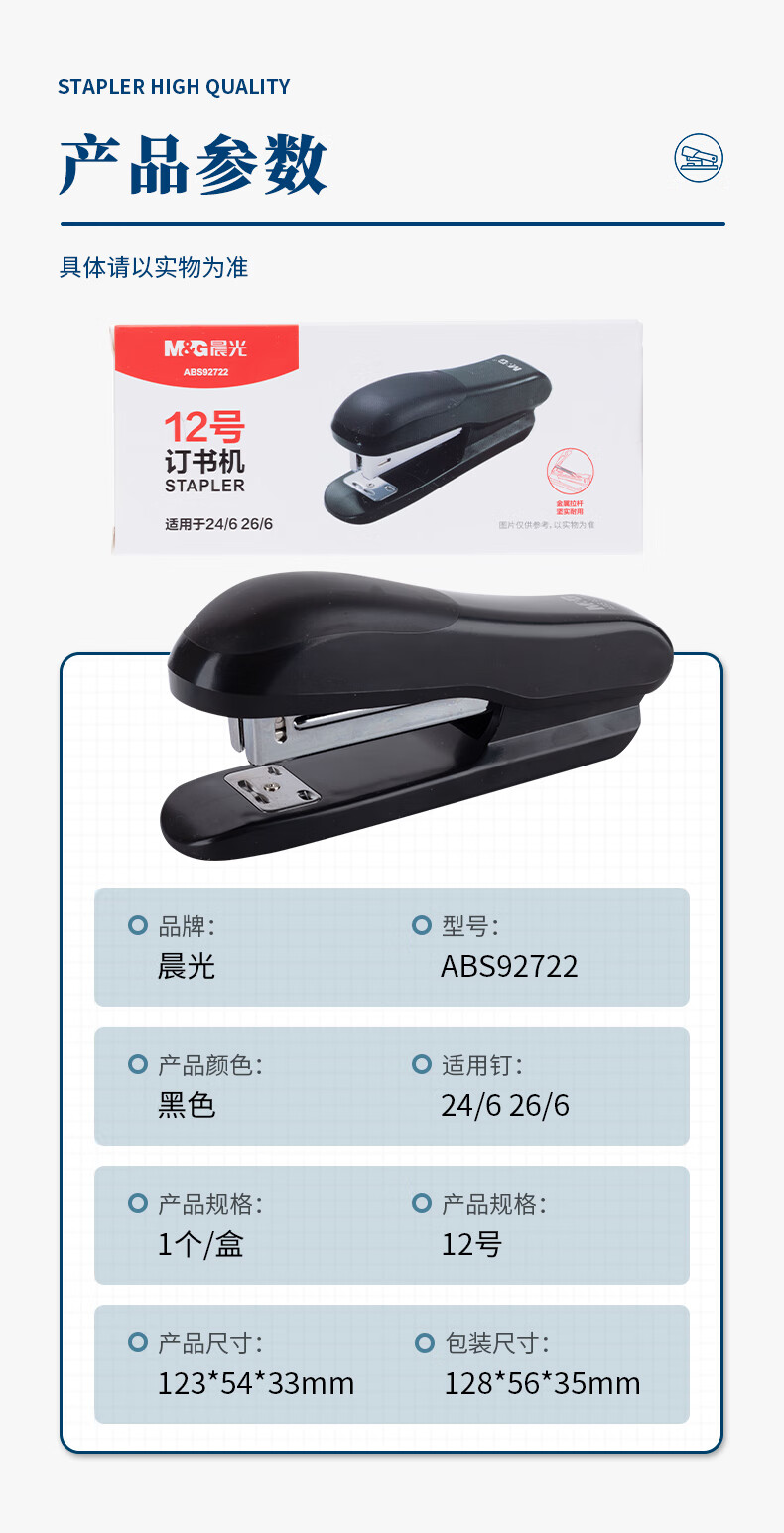 商品名稱:晨光ABS92722 12#訂書機 耐用便攜訂書器 辦公用品 單個裝