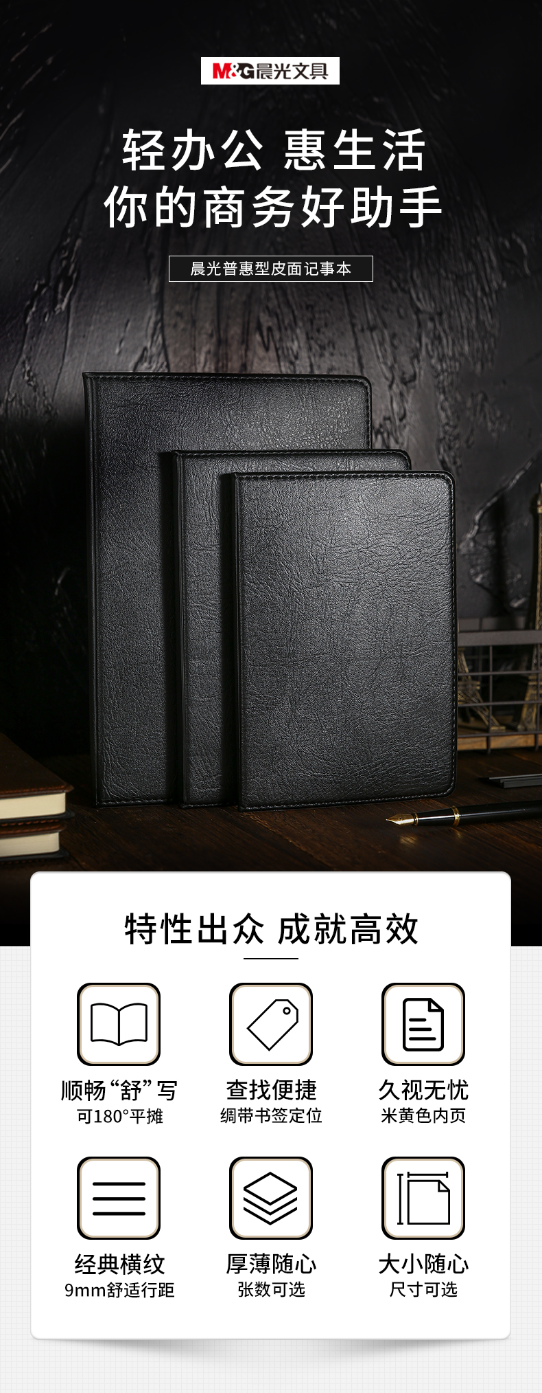 商品名稱:晨光APYE3K78 筆記本 B5/18K會議記錄皮面本 80張黑色商務記事本 單本裝