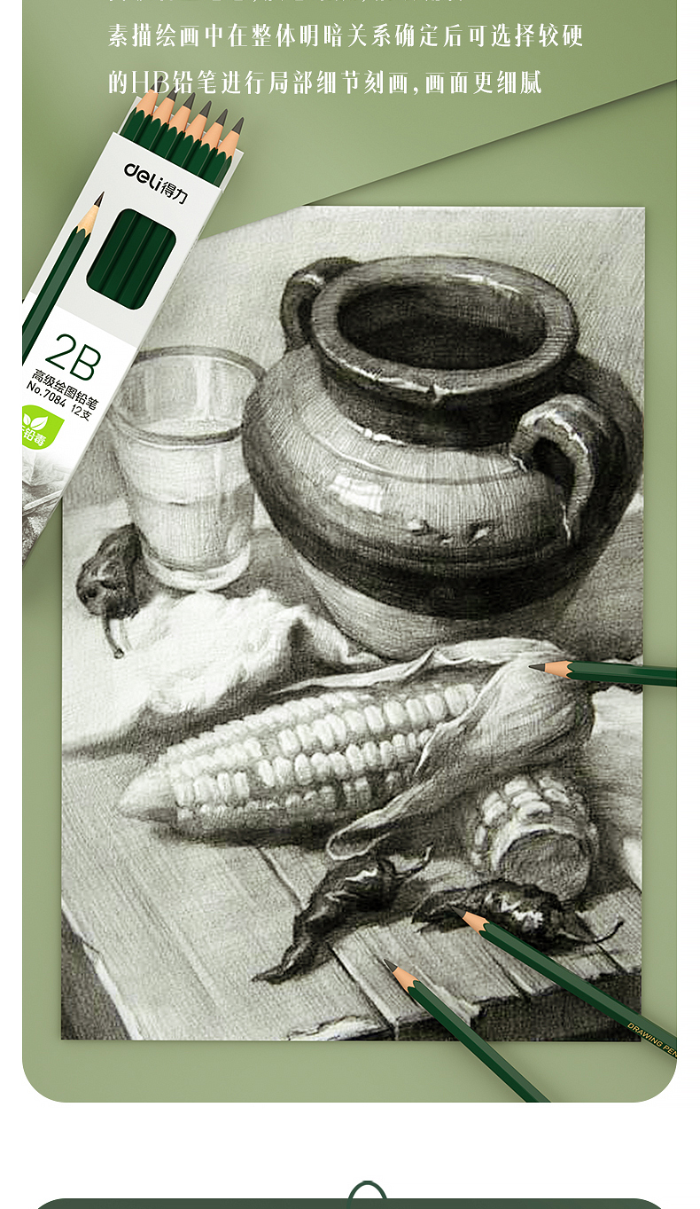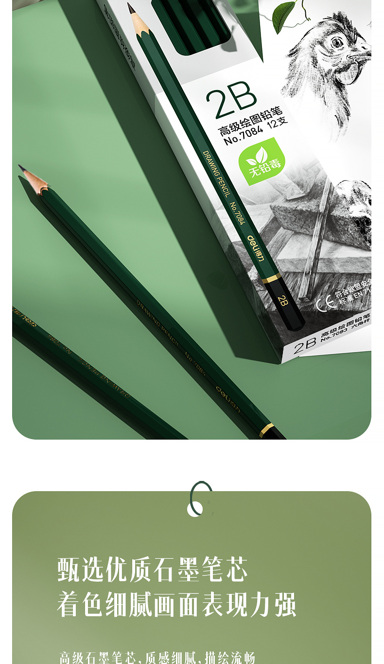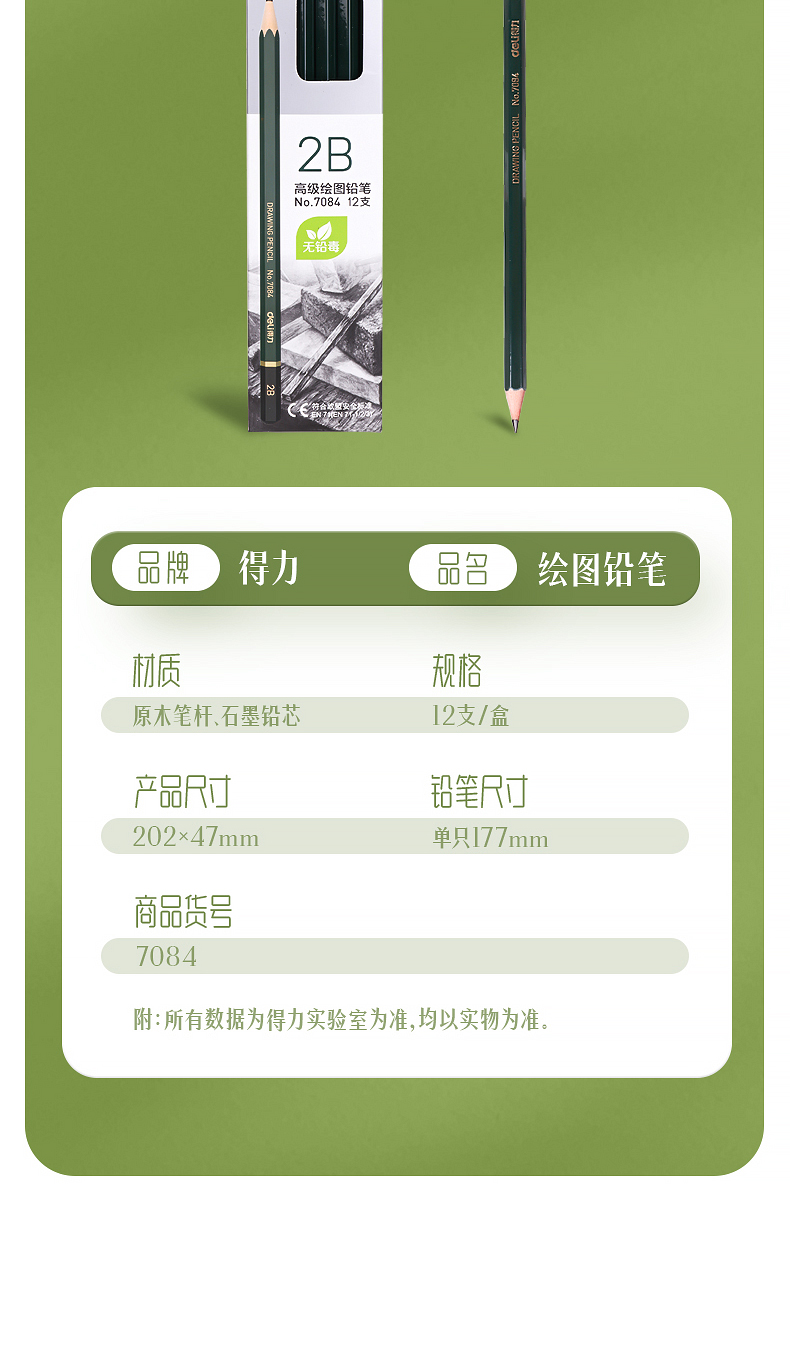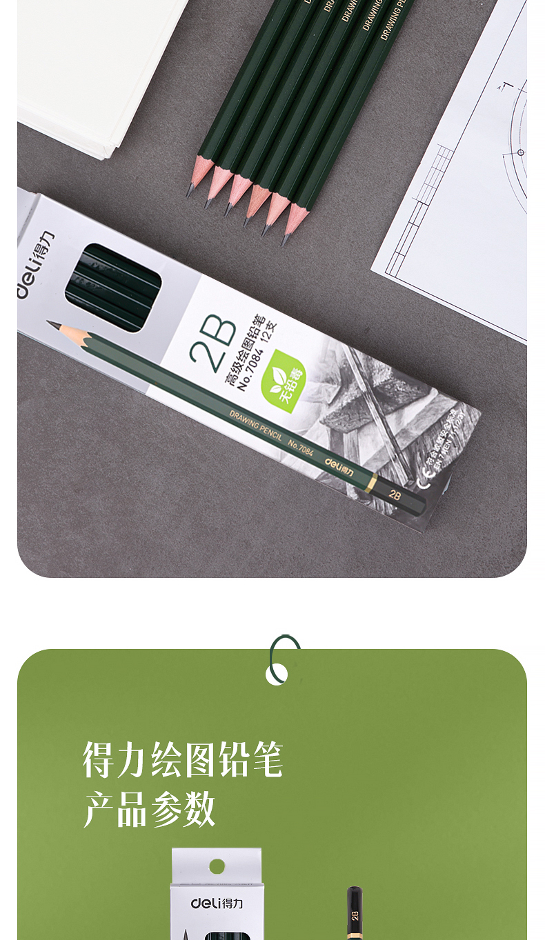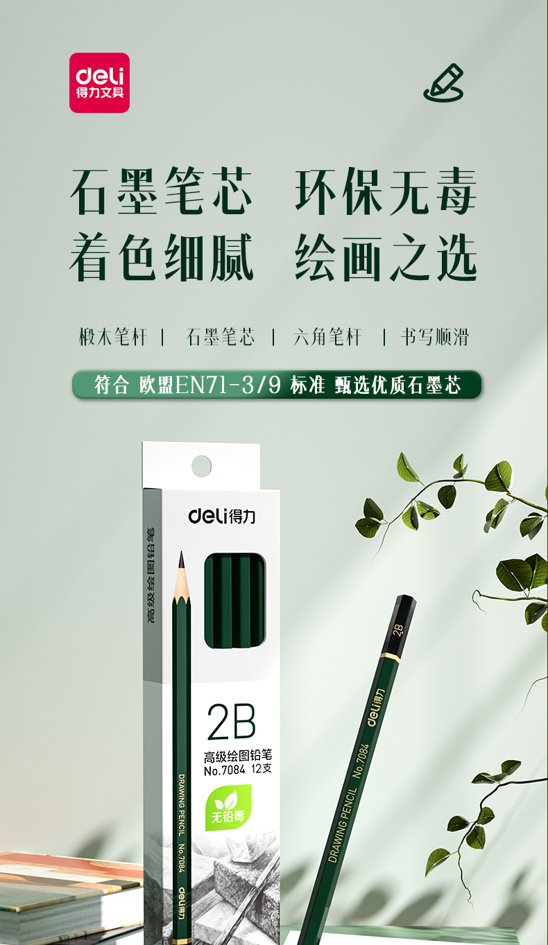 商品名稱:得力7084 2B鉛筆 素描繪圖六角鉛筆 12支/盒