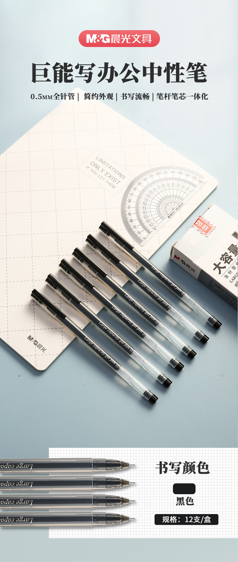 商品名稱:晨光AGPY5501 中性筆 0.5mm拔蓋全針管一體芯大容量簽字筆水筆 12支/盒