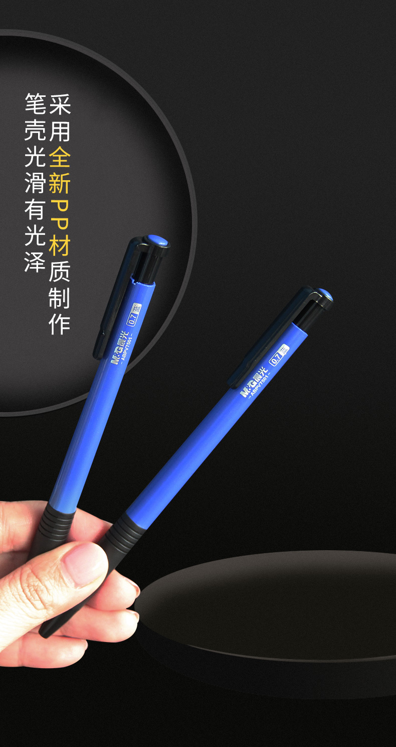 商品名稱:晨光ABP41701 藍色按動圓珠筆 0.7mm子彈頭原子筆 俊逸系列中油筆 40支/盒