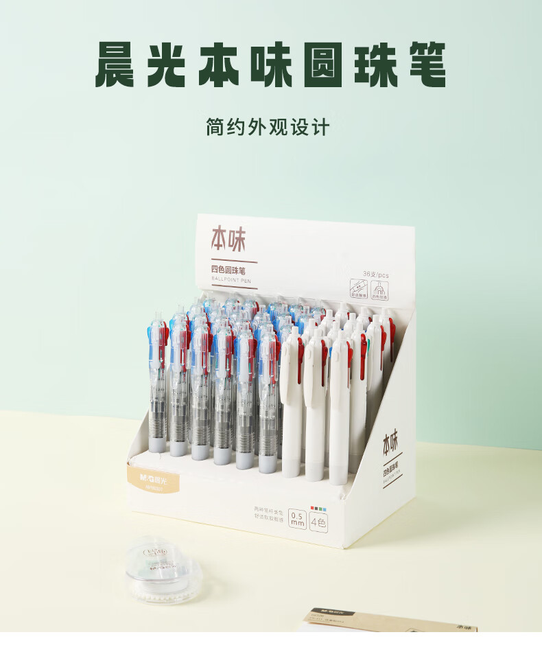 商品名稱:晨光ABP80307 按動圓珠筆 本味系列四色0.5mm子彈頭原子筆 四合一順滑油筆 3支裝