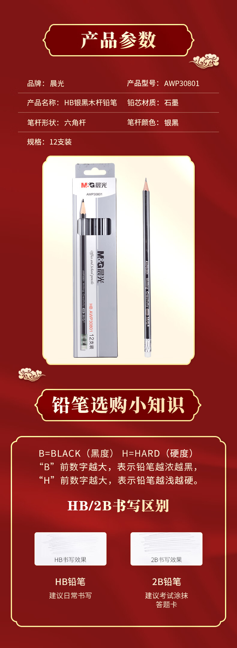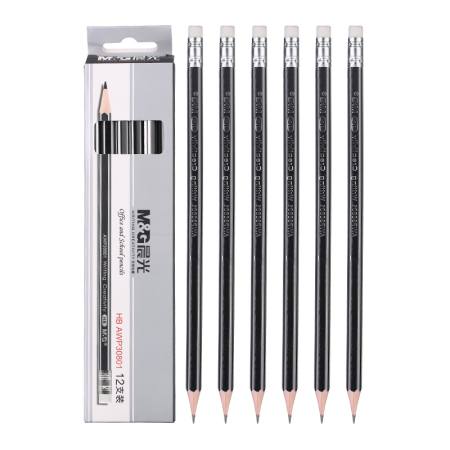 商品名稱:晨光AWP30801 HB鉛筆 銀黑抽條六角木桿鉛筆帶橡皮頭 12支/盒