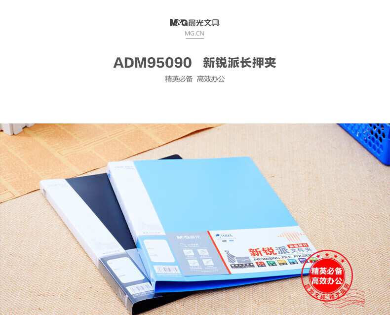 商品名稱:晨光ADM95090 強力文件夾 A4金屬單長押夾板夾插頁 藍色 單個裝