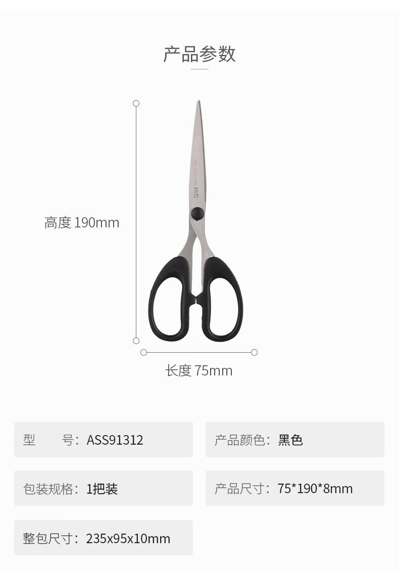 商品名稱:晨光ASS91312 黑色剪刀 195mm經(jīng)典手工剪紙刀辦公剪子 單把裝