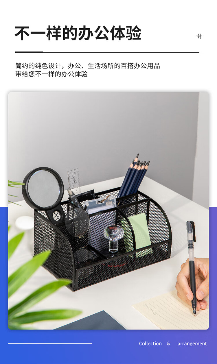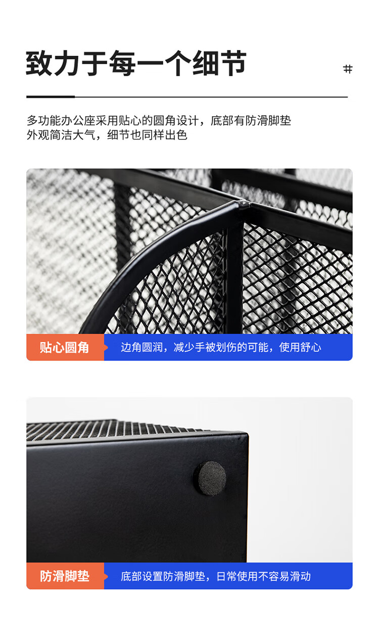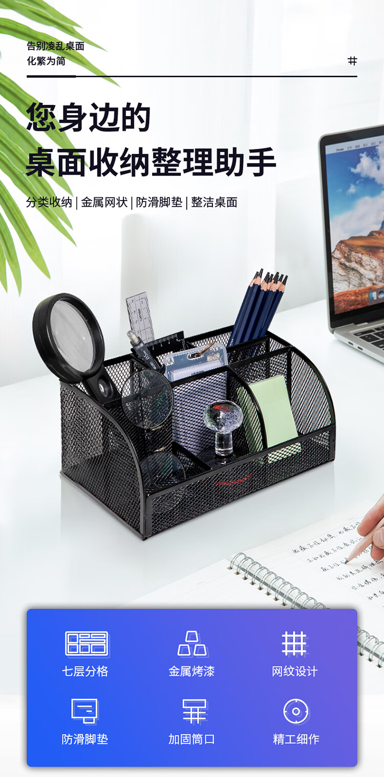 商品名稱:得力8903 多功能七格組合筆筒 金屬網(wǎng)紋桌面收納盒 辦公用品 黑色 單個裝