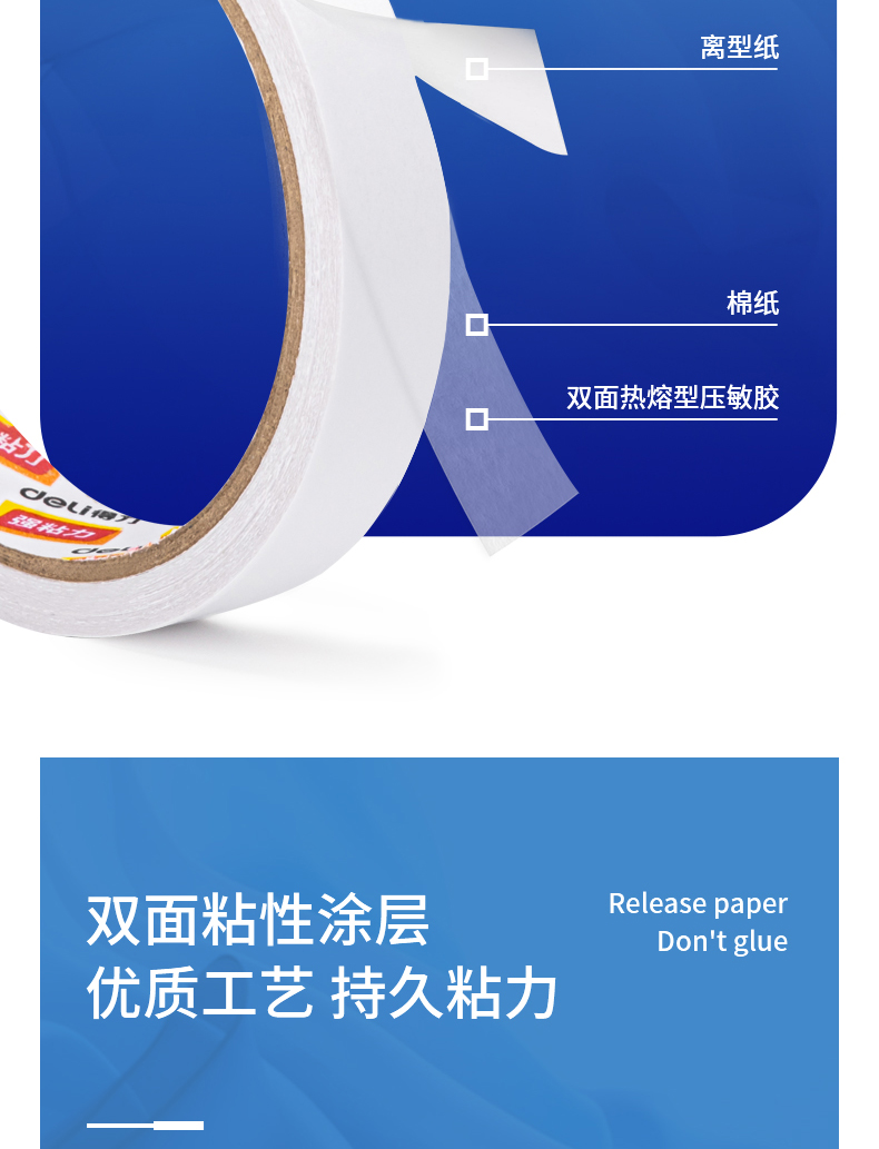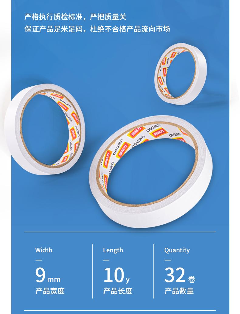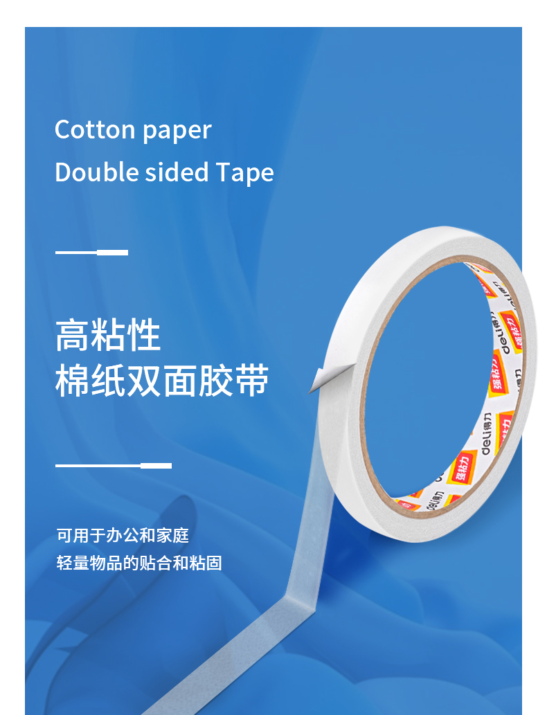 商品名稱:得力30400 高粘棉紙雙面膠帶 9mm*10y白色 32卷/袋