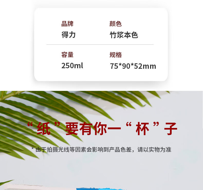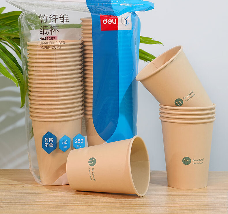 商品名稱:得力19207 一次性紙杯 250m竹纖維本色杯子/水杯 加厚隔熱 50只/袋