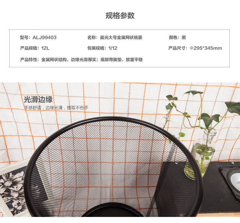 商品名稱:晨光ALJ99403 大號金屬網(wǎng)狀垃圾桶 辦公垃圾分類紙簍 穩(wěn)固型垃圾簍 單個裝